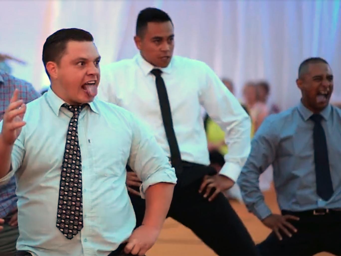 Aaliya and Benjamin Armstrong married in Auckland last week and were blown away by a performance of the traditional Maori dance at their wedding reception by the groomsmen and guests.