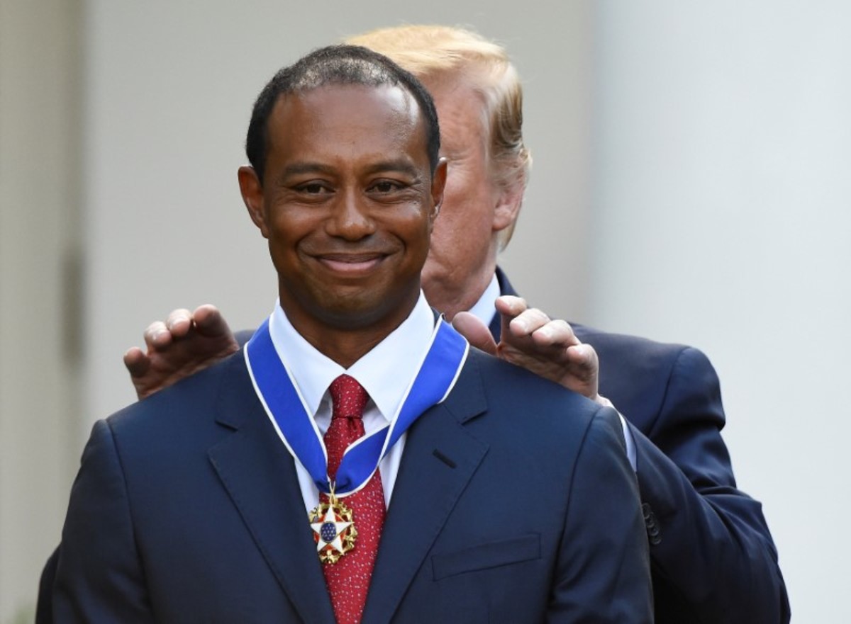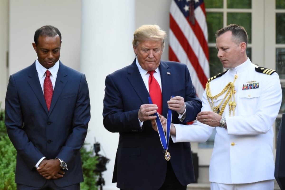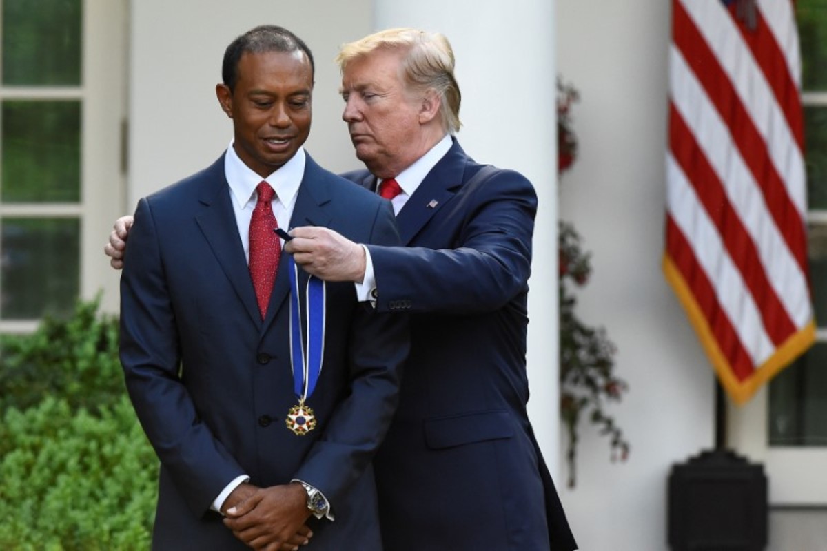 Trump, an avid golfer, described the 15-times major champion as a "a global symbol of American excellence, devotion and drive".