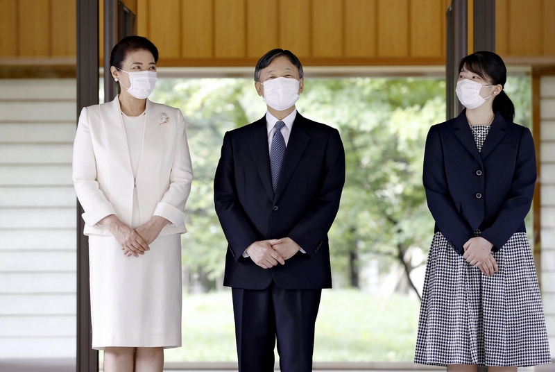 Seen off by Crown Prince Akishino, Crown Princess Kiko and their aides, the Emperor's family left the Akasaka Imperial Residence in Minato Ward, Tokyo, at about 2:30 p.m. Monday along with the Imperial regalia of the sacred sword and jewels. They entered the Imperial Palace at about 2:40 p.m.