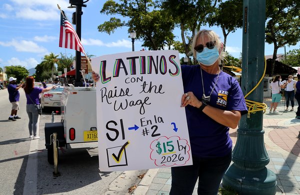 "Muchos estudios muestran que las personas de bajos ingresos gastan la mayor parte de su dinero en la comunidad, mientras que las personas de mayores ingresos pueden invertir o viajar", dijo Helene O'Brien, directora de Florida del sindicato 32SBJ.