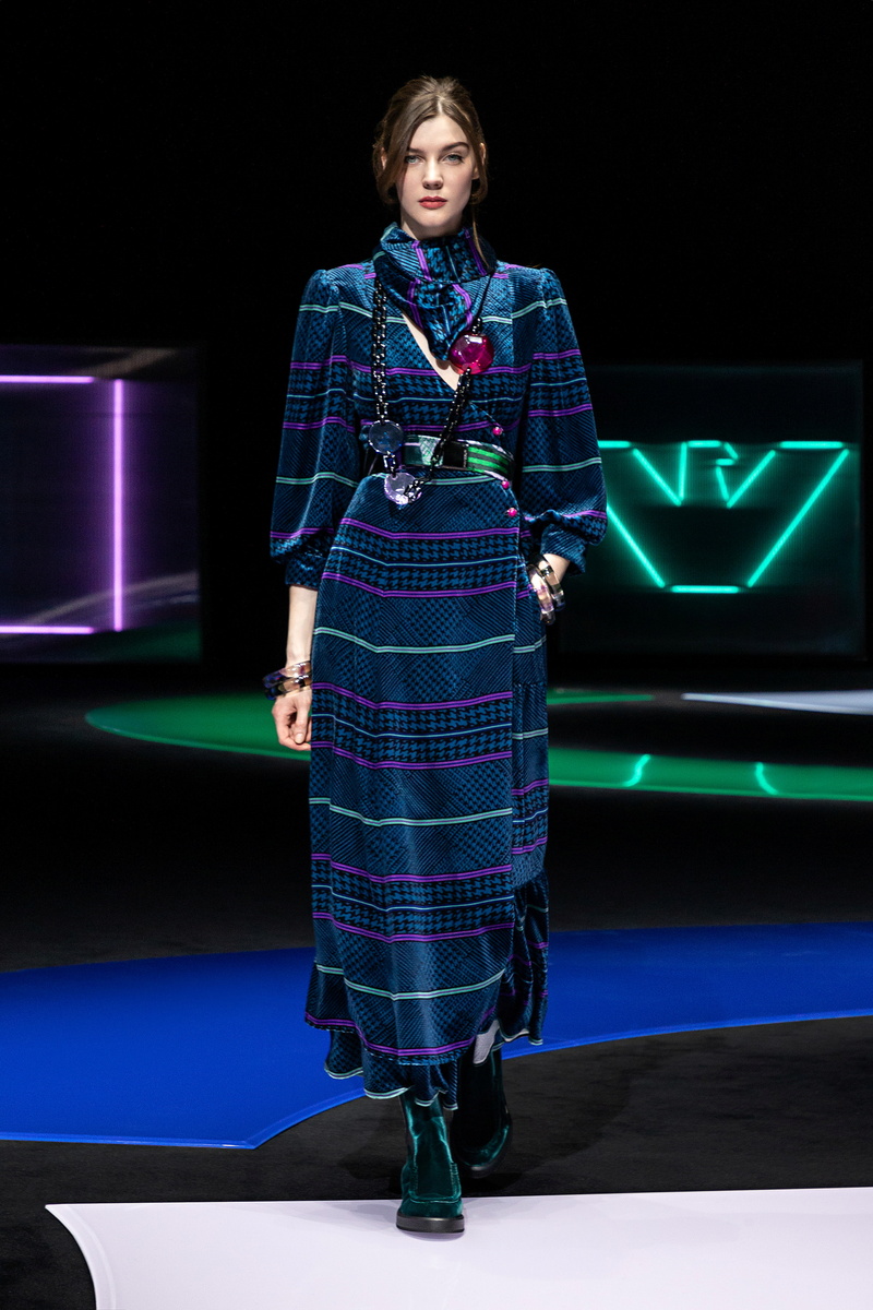 Giorgio Armani is taking fashionistas back to the 1980s for his fall Emporio Armani line, nodding to the era's bright colours in his latest creations at Milan Fashion Week.