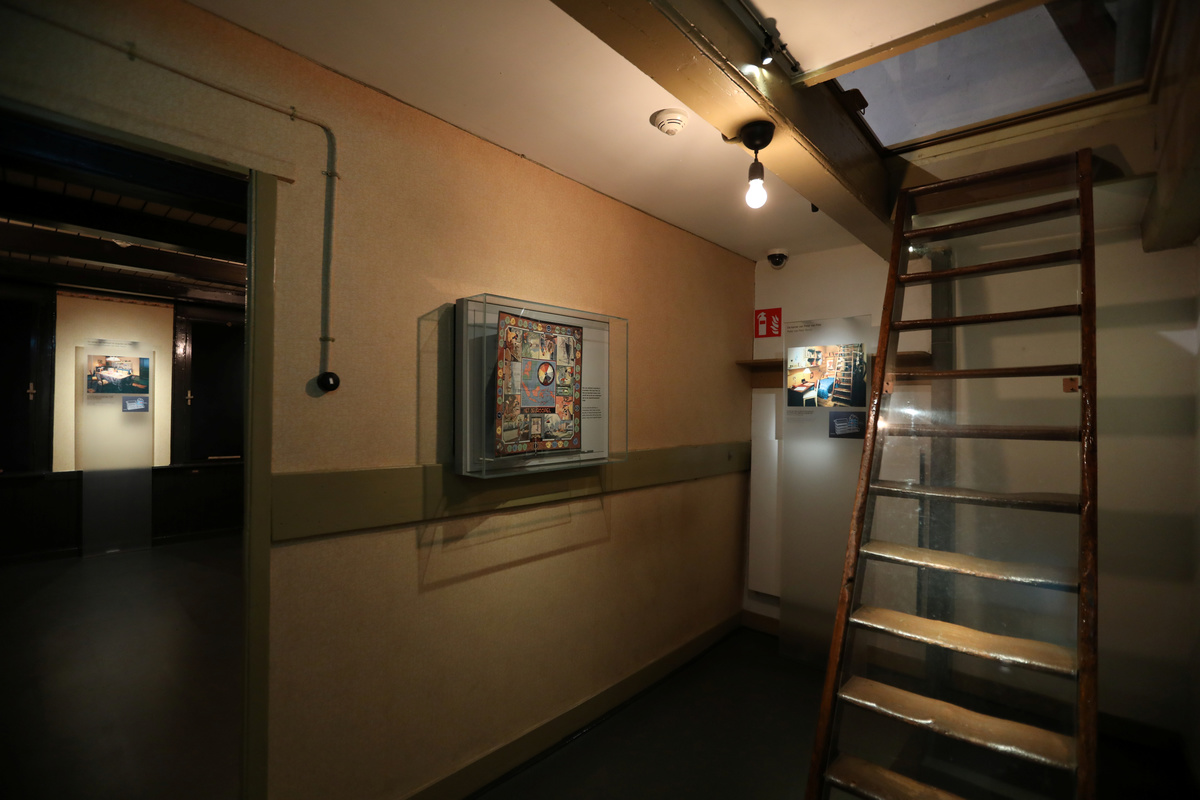 The museum concludes with a simple room where the original red-and-white bound diary -- which outgrew its covers -- and several additional pages are on display. Photographs are not allowed due to the fragility of the pages.
