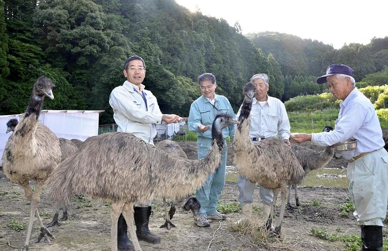 Yoshiharu Torikai, 60, who runs a construction company in the town, and others turned to emus to revive abandoned farming land.