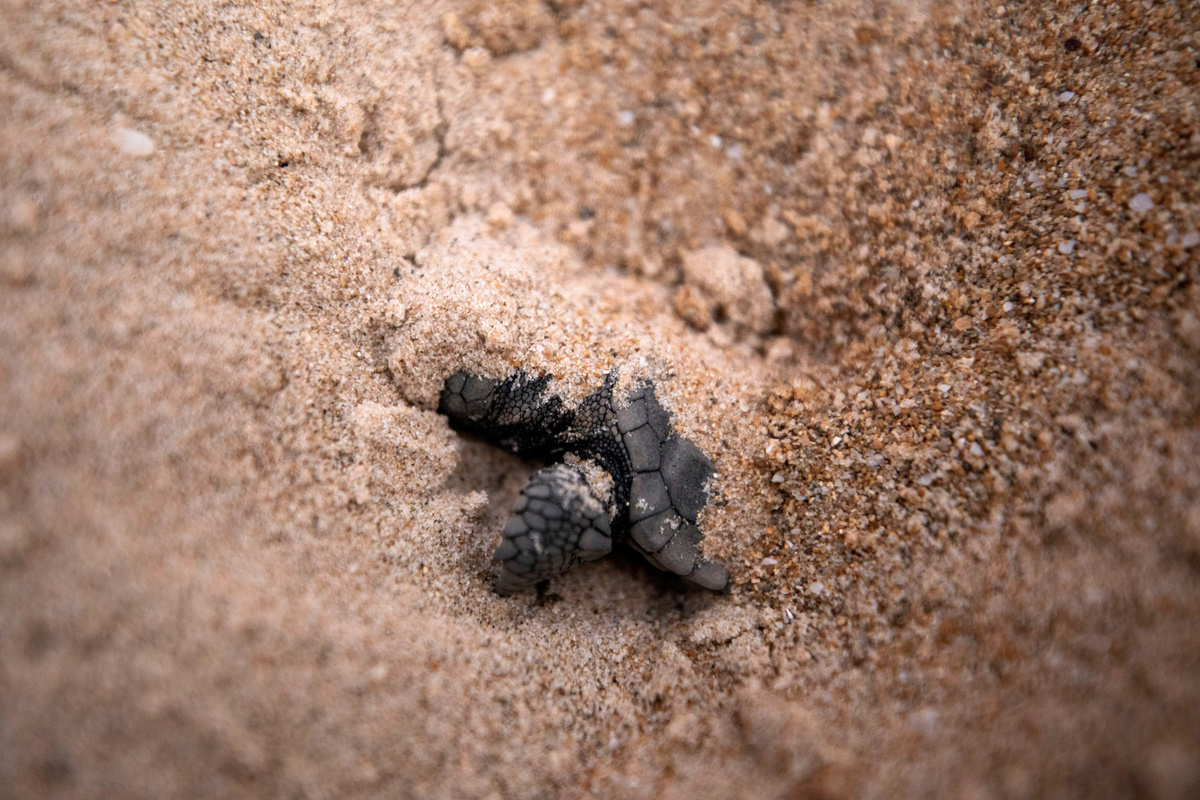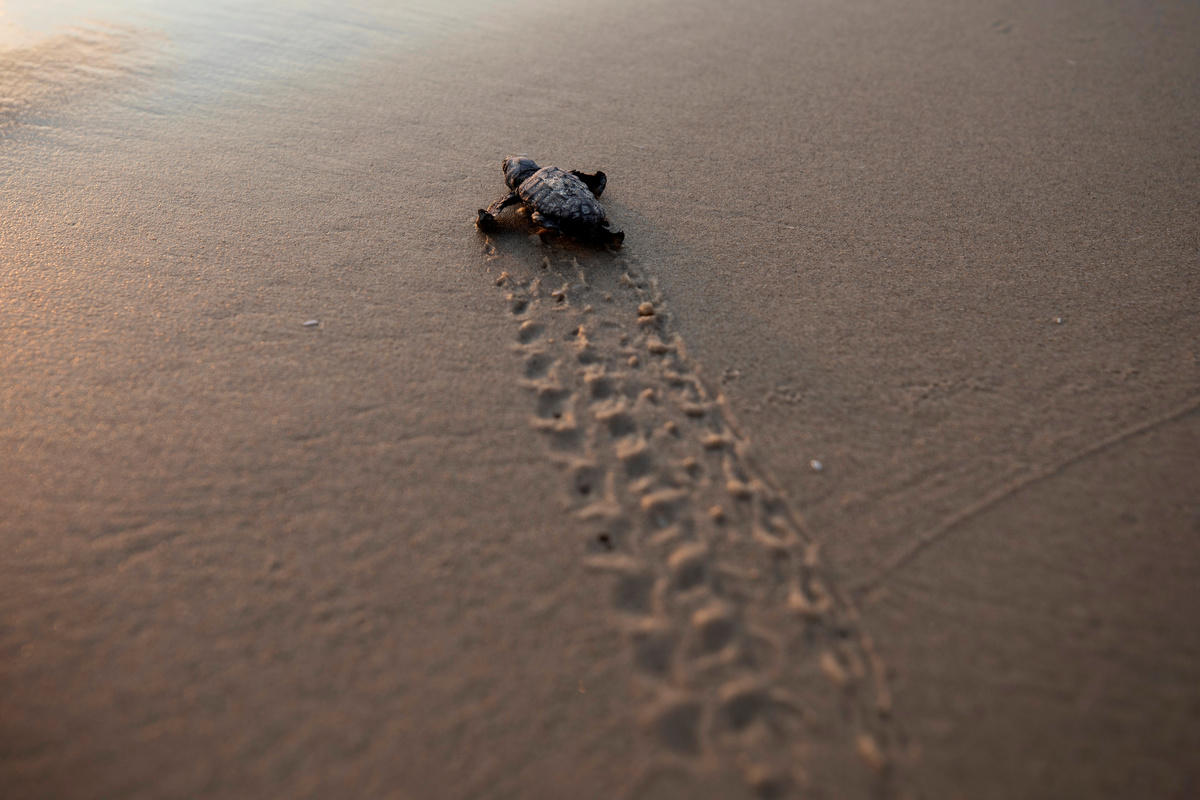 A newly-hatched baby sea turtle makes its way into the Mediterranean Sea for the first time, as part of the Israeli Sea Turtle Rescue Center's conservation programme, at a beach near Mikhmoret north of Tel Aviv, Israel September 9, 2019. REUTERS/Amir Cohen