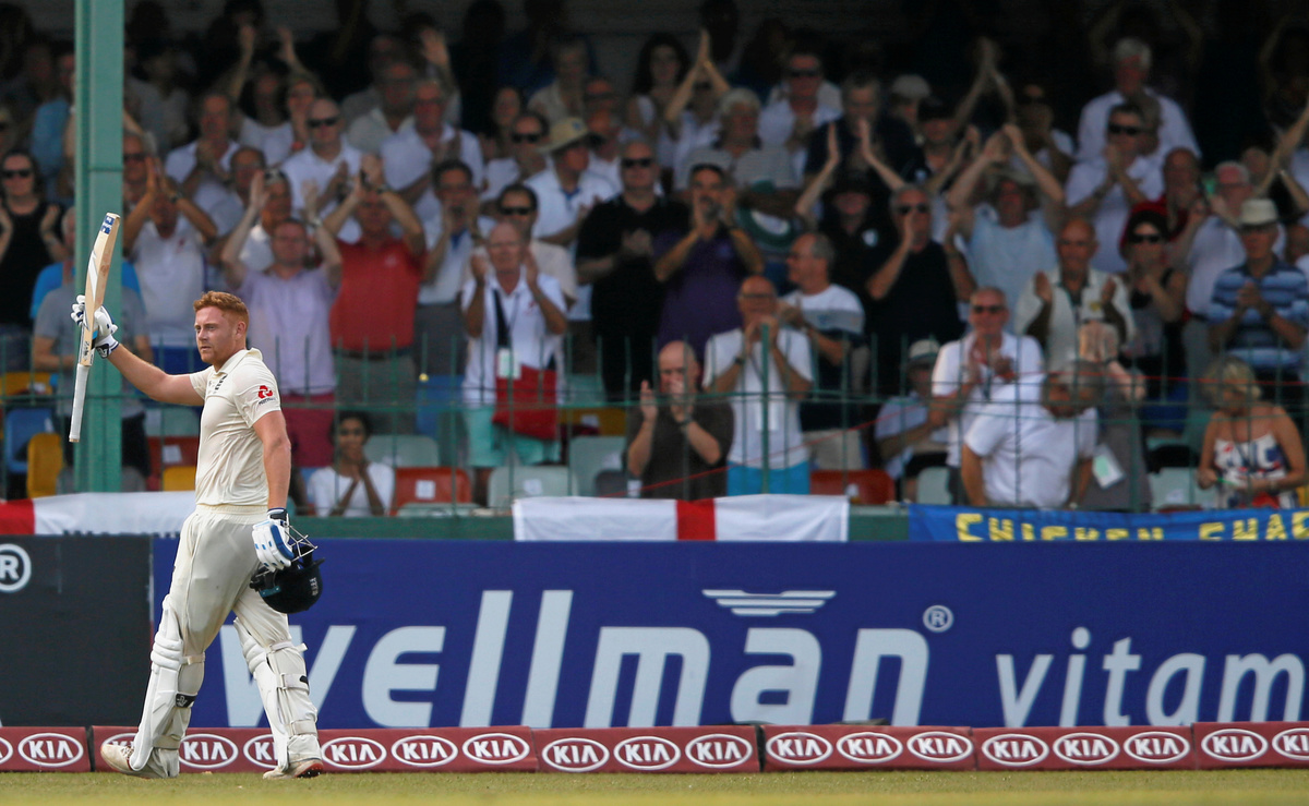 Three balls later, Sandakan bowled Stuart Broad around his legs for a duck and Mathews took a brilliant running catch in the next over to send back Jack Leach.