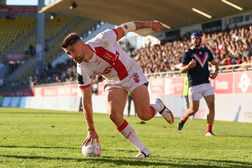 Right winger Tom Davies, playing on his home ground, came up with a remarkable acrobatic finish to score England’s second try and left winger Tom Makinson quickly added a third courtesy of a cut-out pass from his St Helens team-mate Jonny Lomax.