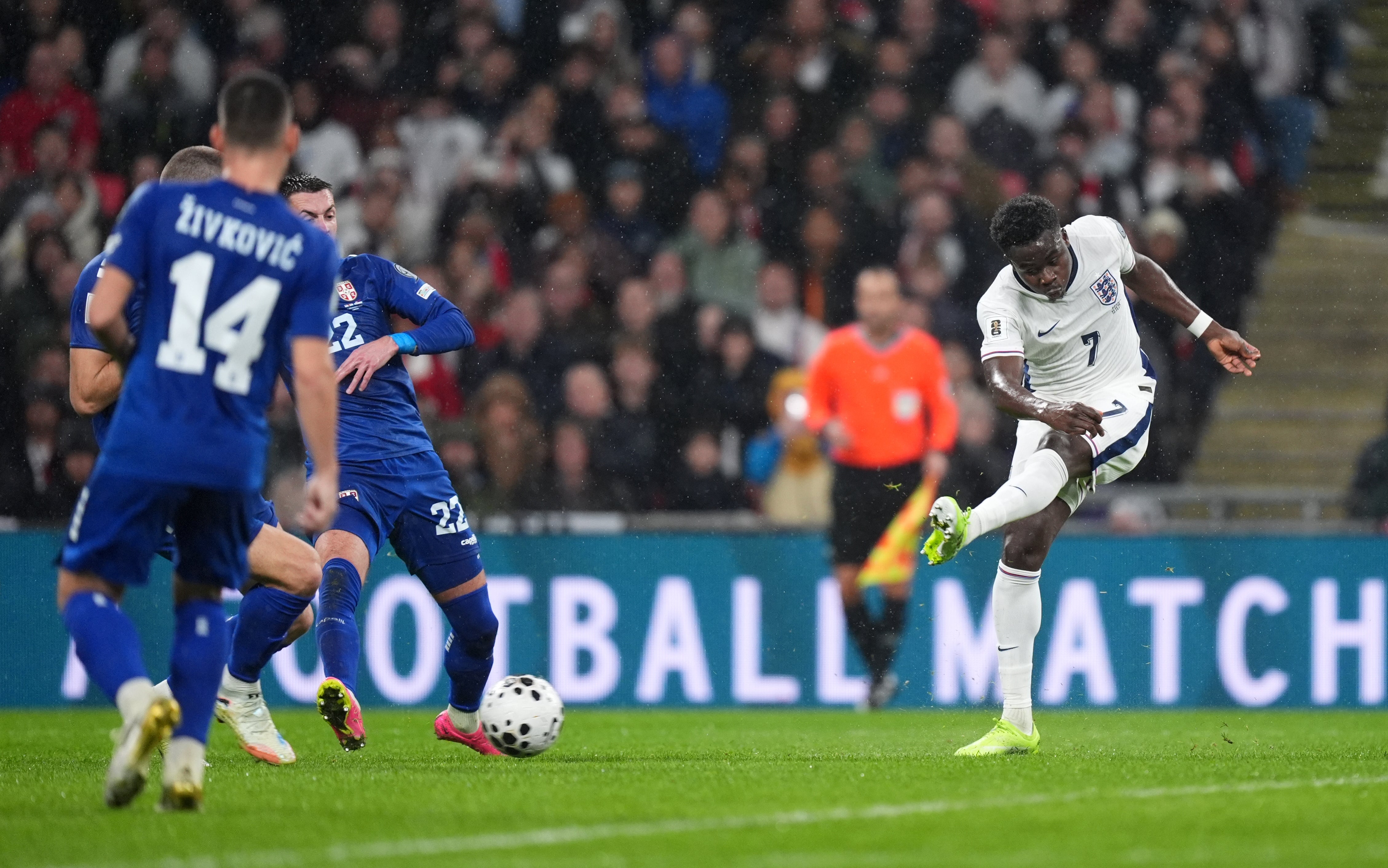 Bukayo Saka’s sublime cushioned volley set England on course for a 2-0 victory against Serbia as their unblemished World Cup qualification campaign continued.