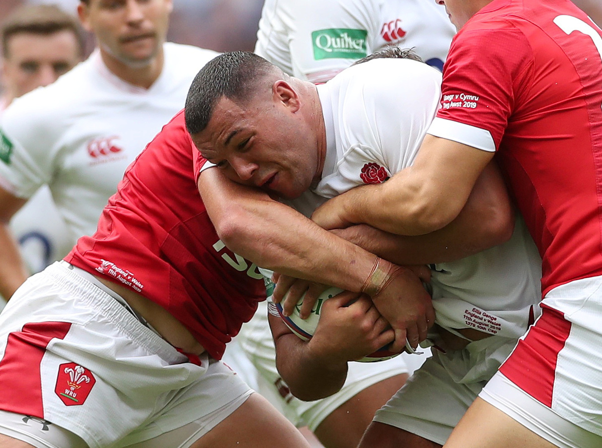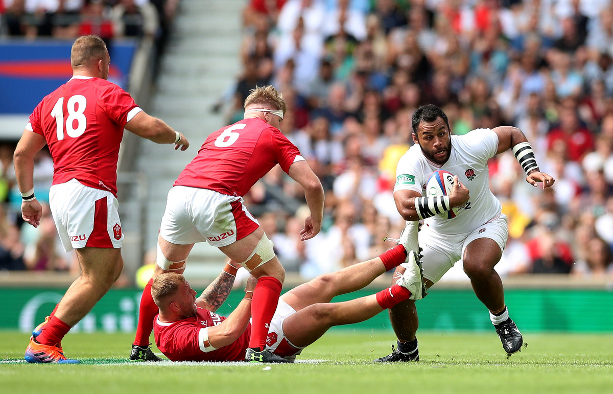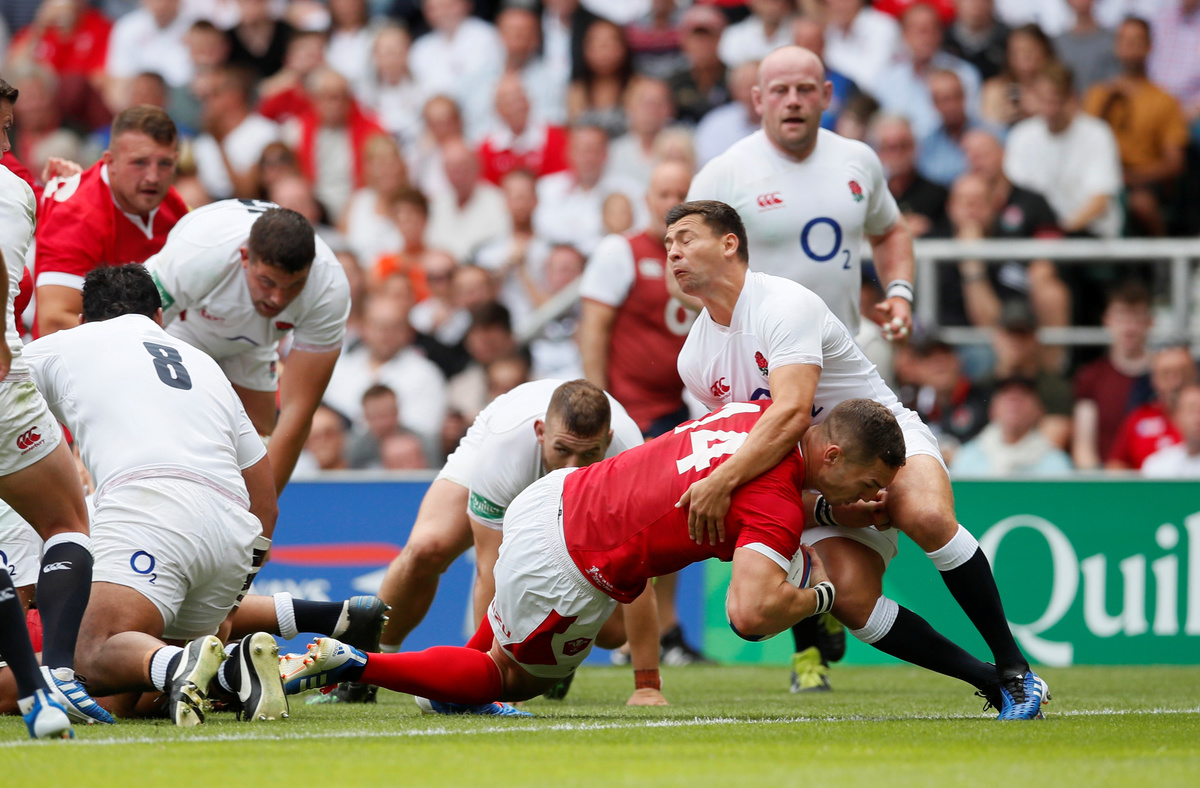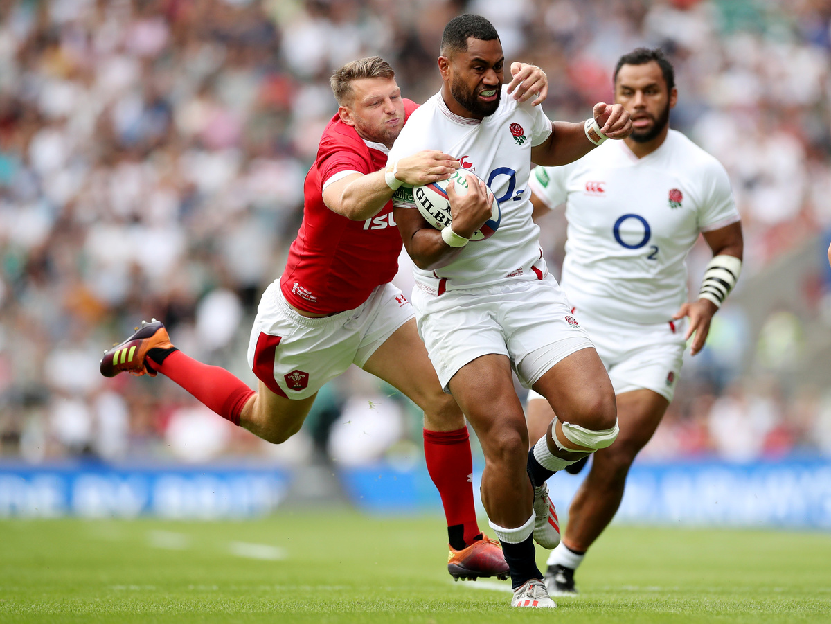 Rugby Union - Rugby World Cup warm-up match - England v Wales - Twickenham Stadium, Twickenham, Britain - August 11, 2019 England's Willi Heinz in action REUTERS/David KleinRugby Union - Rugby World Cup warm-up match - England v Wales - Twickenham Stadium, Twickenham, Britain - August 11, 2019 Wales' Dan Biggar in action with England's Joe Cokanasiga Action Images via Reuters/Peter CziborraRugby Union - Rugby World Cup warm-up match - England v Wales - Twickenham Stadium, Twickenham, Britain - August 11, 2019 Wales' George North scores their second try REUTERS/David KleinRugby Union - Rugby World Cup warm-up match - England v Wales - Twickenham Stadium, Twickenham, Britain - August 11, 2019 England's Jack Singleton and Tom Curry at the end of the match REUTERS/David KleinRugby Union - Rugby World Cup warm-up match - England v Wales - Twickenham Stadium, Twickenham, Britain - August 11, 2019 Wales' Dan Biggar attempts a conversion REUTERS/David KleinRugby Union - Rugby World Cup warm-up match - England v Wales - Twickenham Stadium, Twickenham, Britain - August 11, 2019 England's Billy Vunipola in action with Wales' Aaron Wainwright and Dillon Lewis Action Images via Reuters/Peter Cziborra