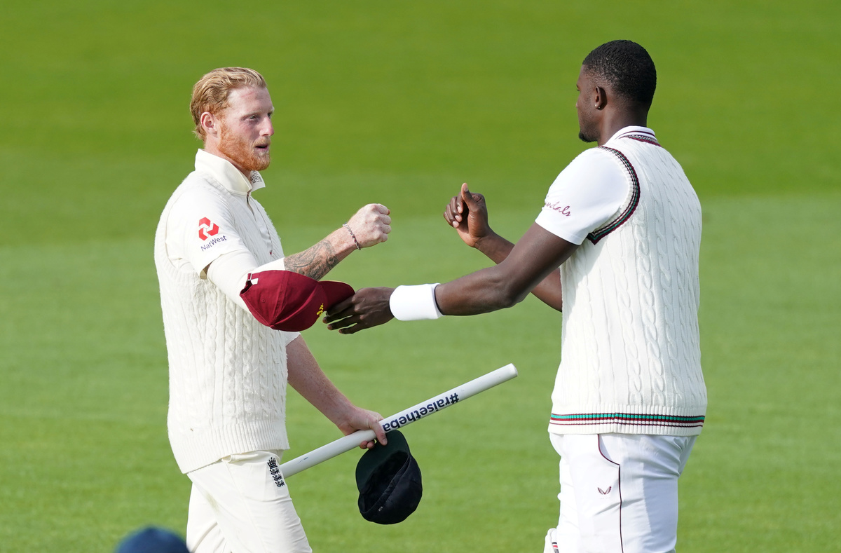 Cricket - Second Test - England v West Indies - Emirates Old Trafford, Manchester, Britain - July 20, 2020 England's Ben Stokes with West Indies' Jason Holder after winning the test, as play resumes behind closed doors following the outbreak of the coronavirus disease (COVID-19) Jon Super/Pool via REUTERS
