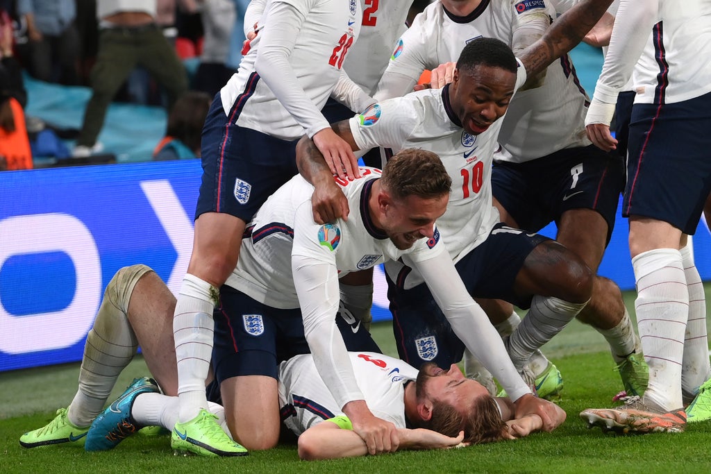An own-goal by Simon Kjaer in the 39th evened the score, and England dominated the second half against a tiring opponent.