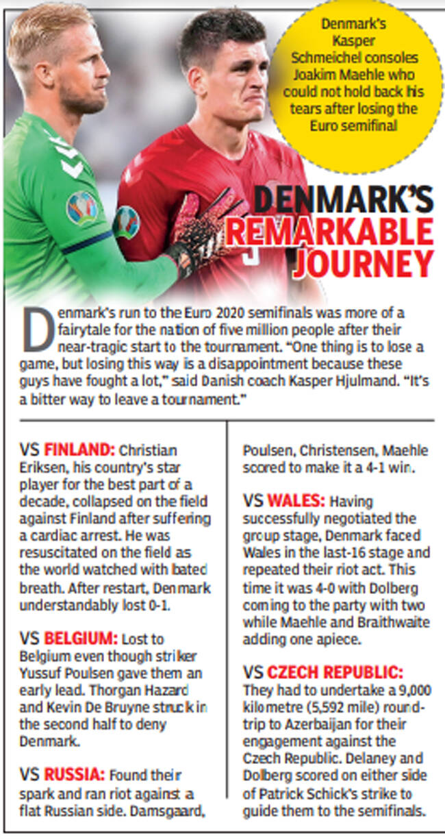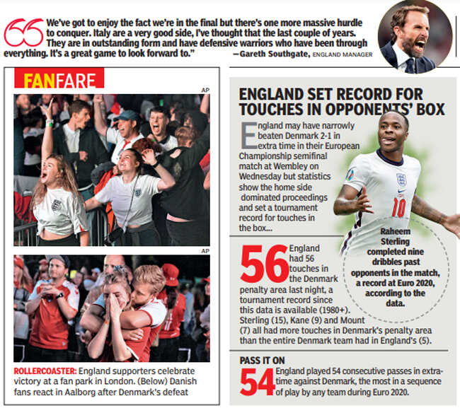 Denmark, in the Euro semifinal on Wednesday, would be different. This would be uncut agony. In the end, England would make it to a final, to uncharted territory, but they would do it in a manner so familiar it was almost comforting.