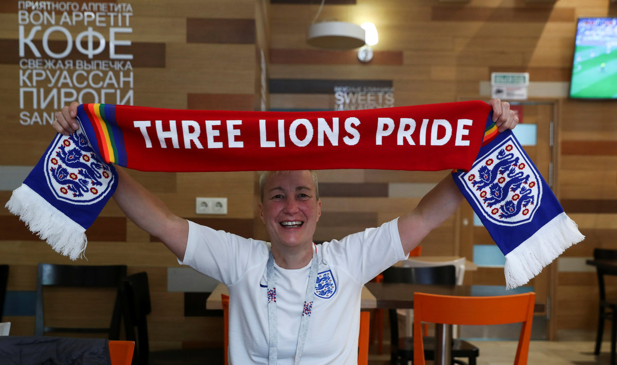 VOLGOGRAD, Russia (Reuters) - England fan Di Cunningham plans to fly the flag - quite literally - for gay rights in Russia on Monday night, where she will be cheering on the Three Lions' in their World Cup opener against Tunisia.