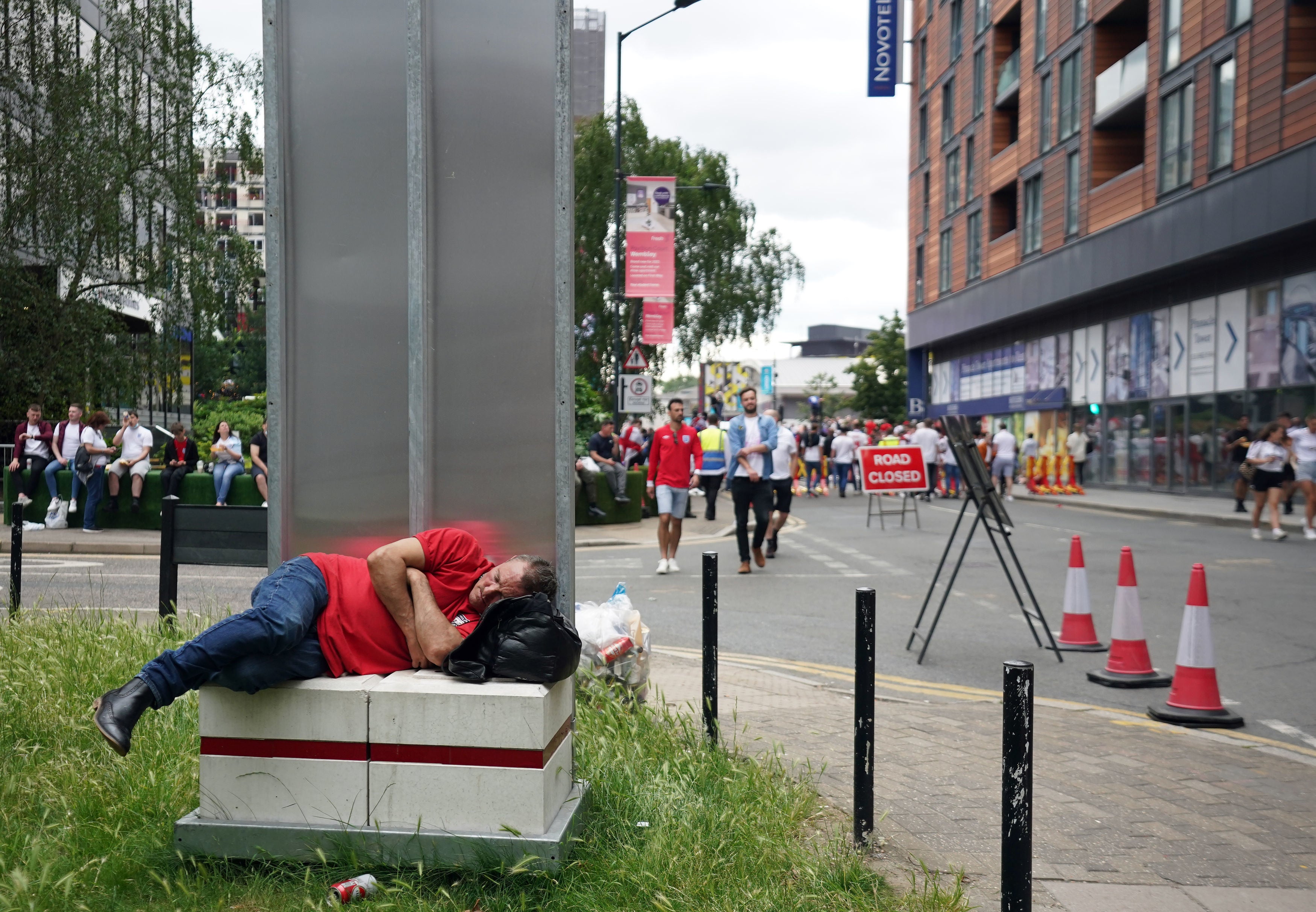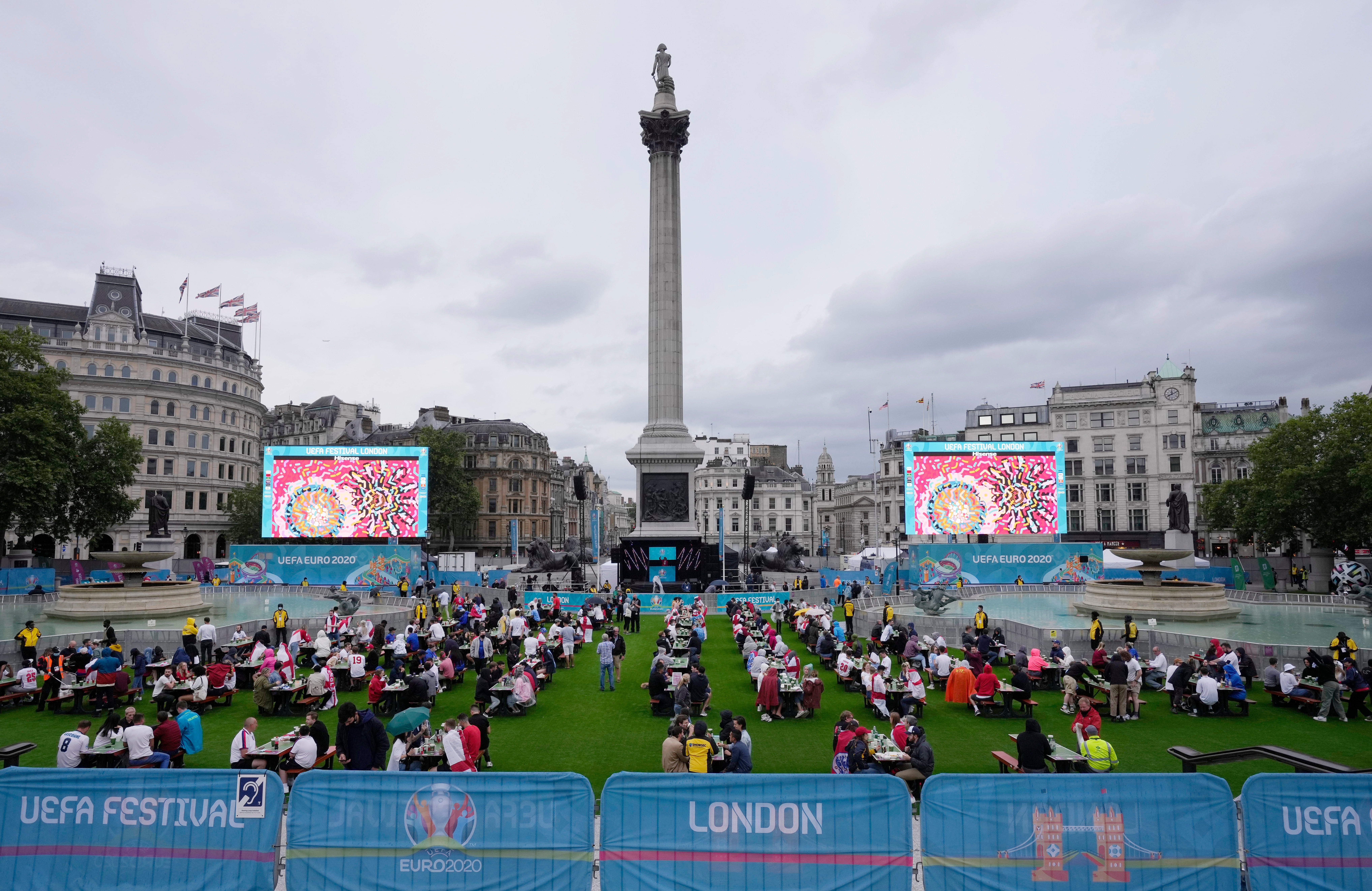Fans also created a lively atmosphere outside Wembley while, near the Uefa fan zone in Trafalgar Square, pubs were packed and large crowds could be seen holding England flags.