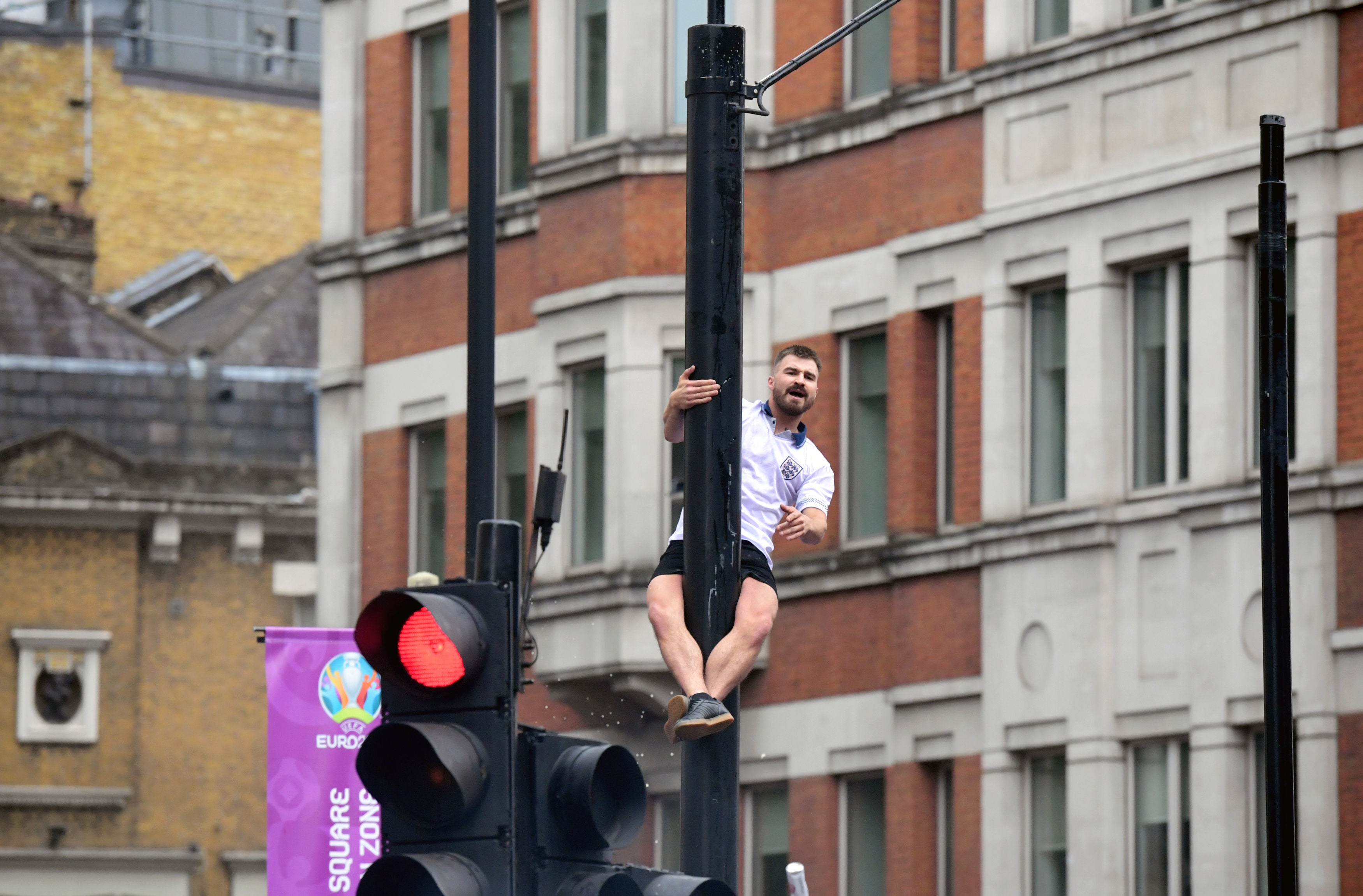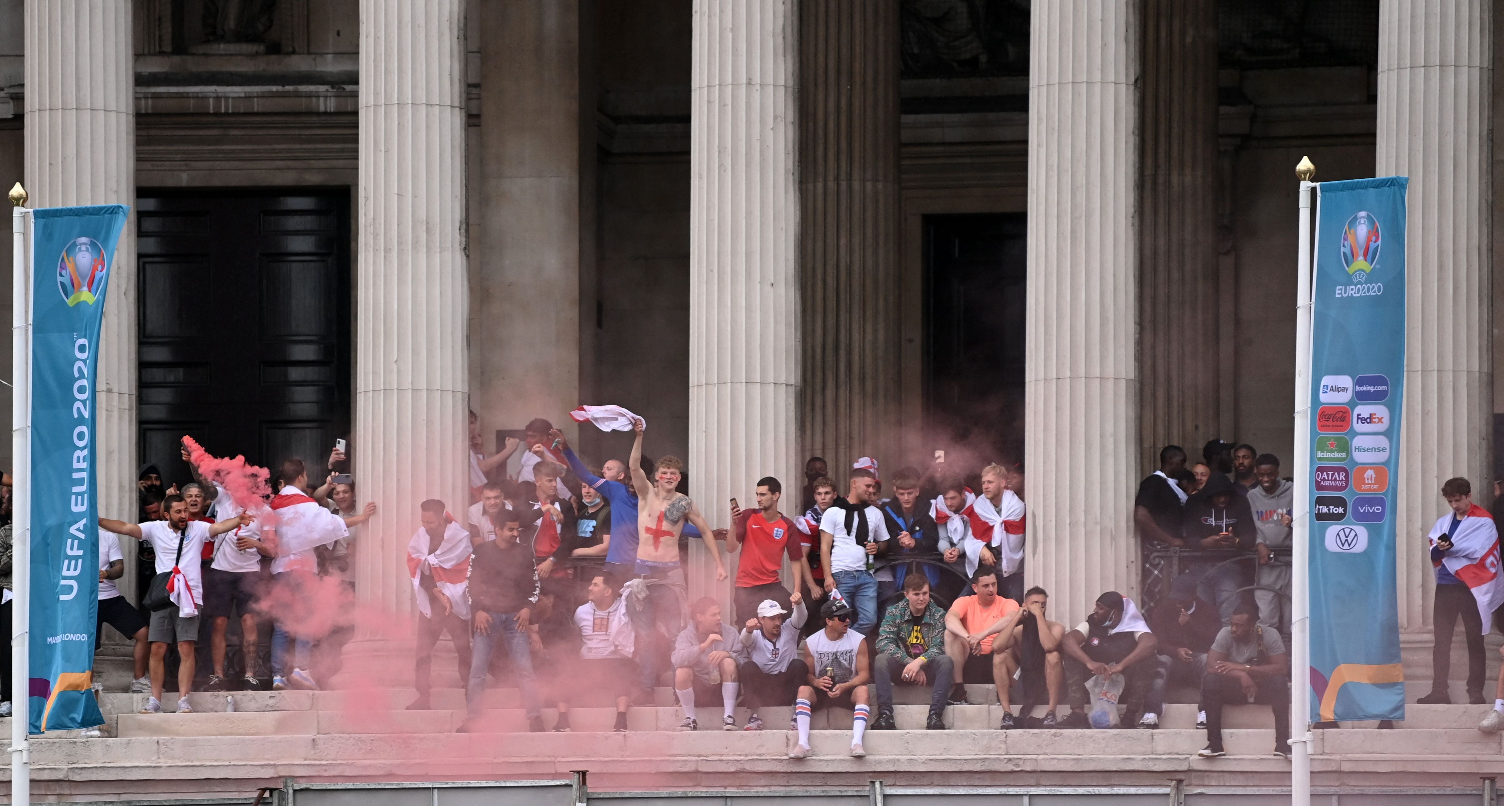 Fans in Leicester Square were also seen throwing bottles and cones and the area was left littered with rubbish. Other images showed fans burning an Italian flag in central London.