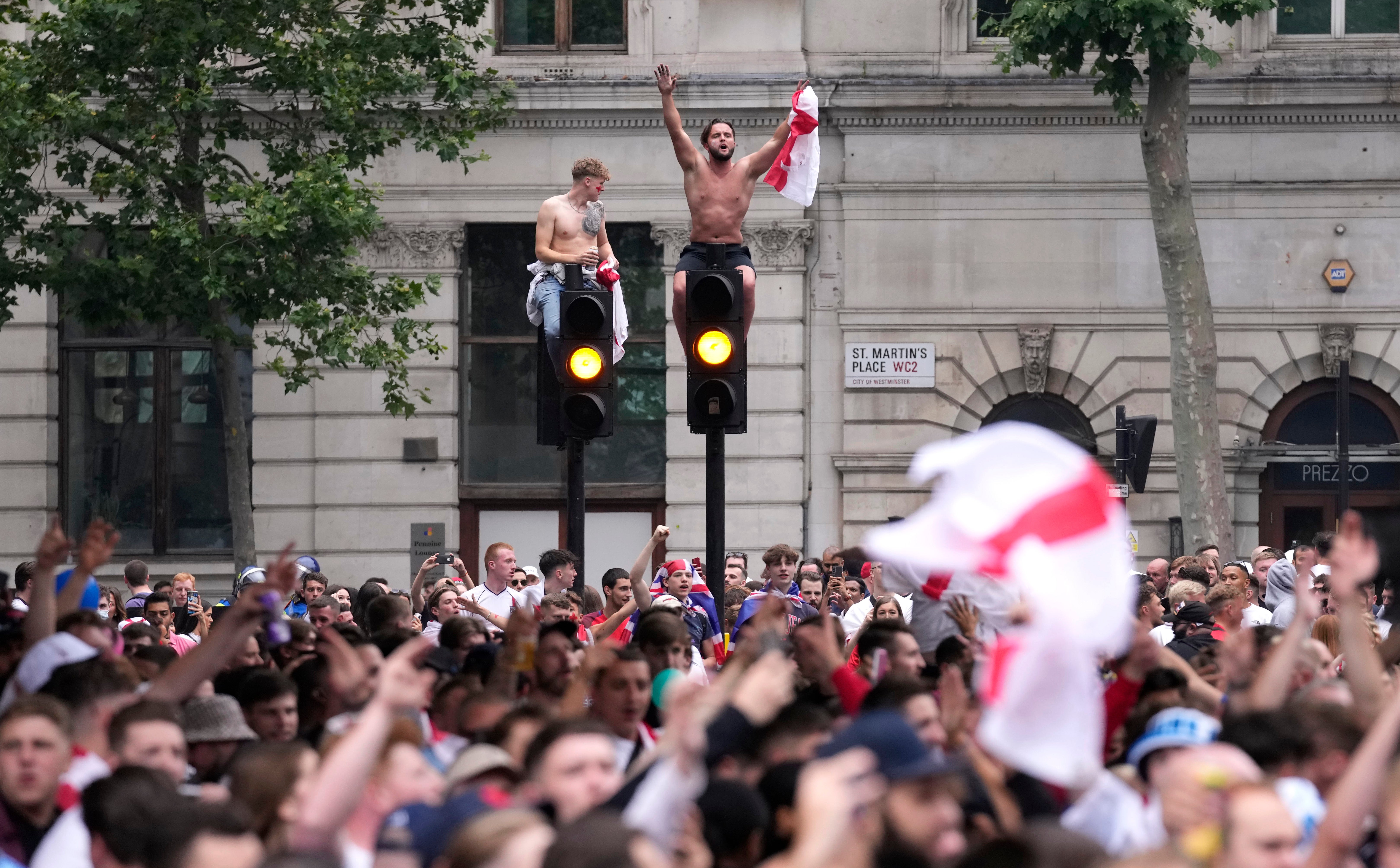 Leicester Square, which has been the scene of much jubilation during the tournament, has been packed with supporters, who could be seen singing, chanting and waving flags, with some throwing flares into the air.