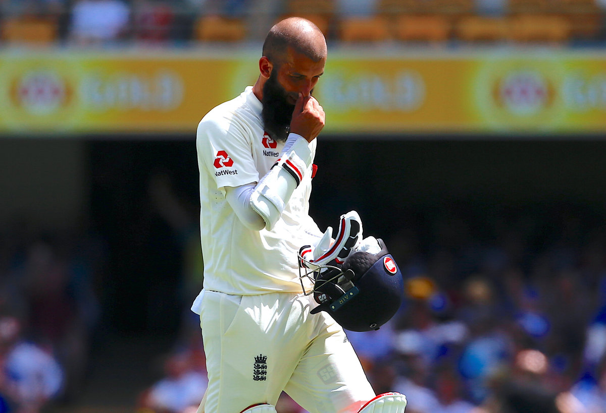 Battling with Jonny Bairstow to push his team to a respectable total, Moeen's back foot strayed forward as he played and missed at a ball from spinner Nathan Lyon, with wicketkeeper Tim Paine sharply whipping off the bails.