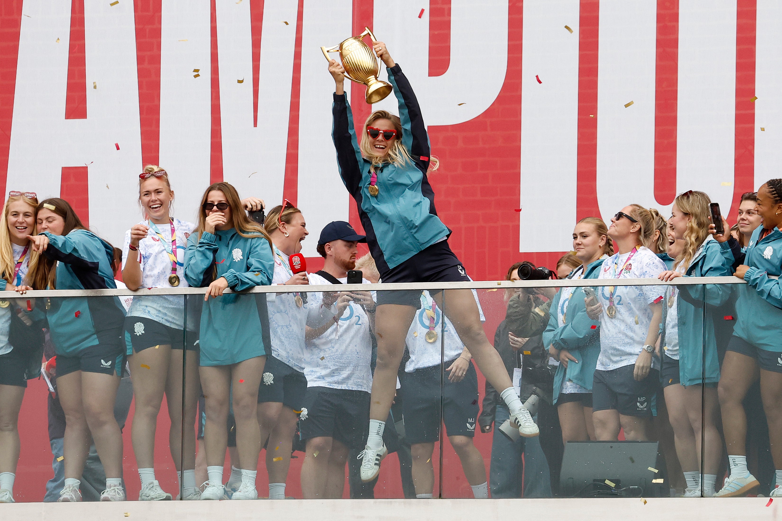 There were plenty, still, who made their way down to the banks of the River Thames to wait for the World Cup winners’ arrivals. Alongside Bronze, double Olympic gold medal winner Kelly Holmes paid tribute to the current crop of champions and all those who came before. “England's women hold down the fort,” she said, looking at Bronze beside her. “It started with the legends you didn't see on television, and we have to keep this rolling. It is about women's sports and about women supporting women."