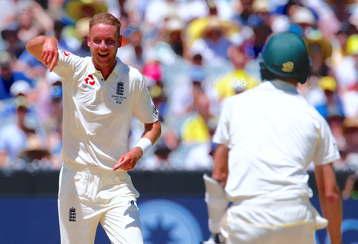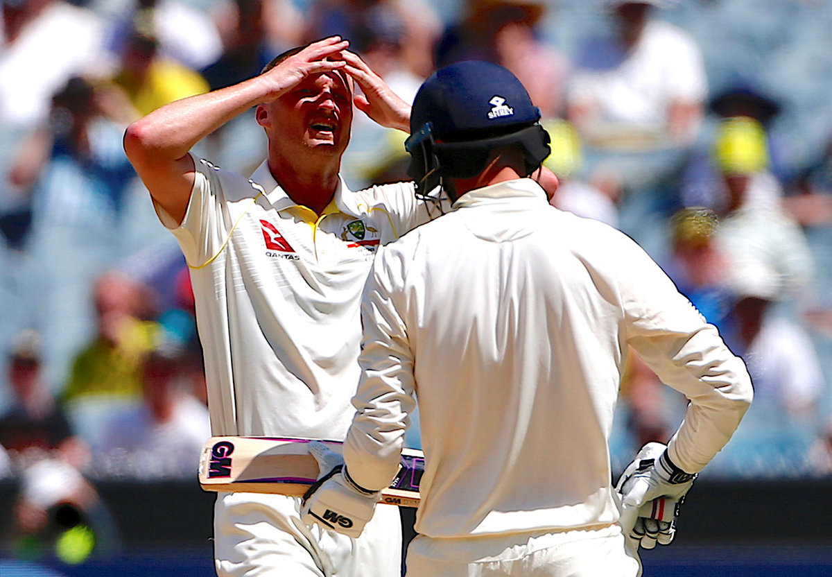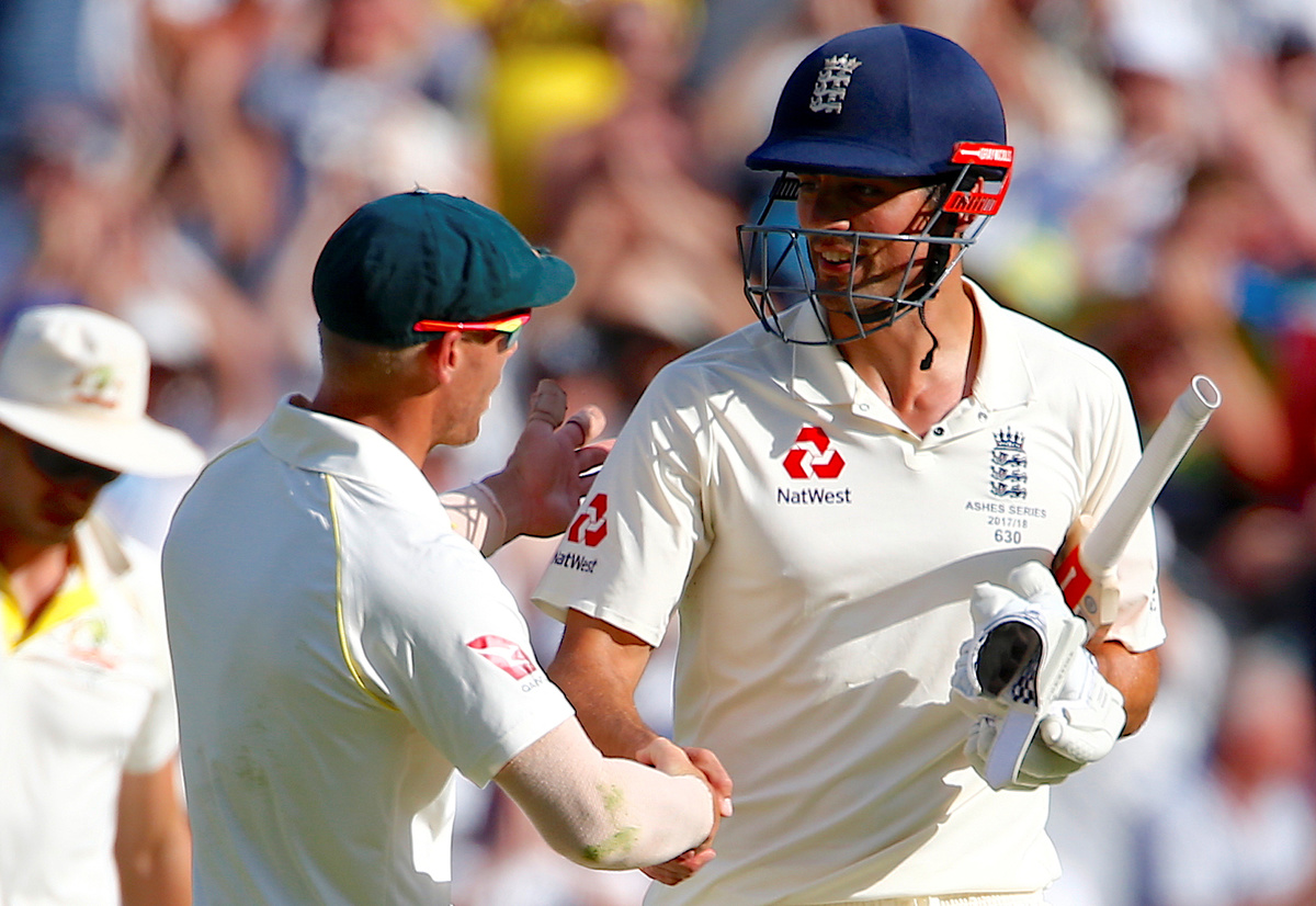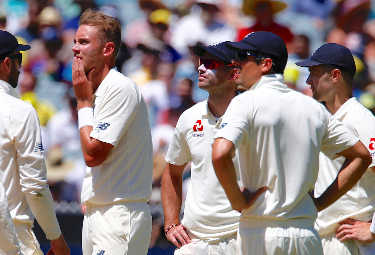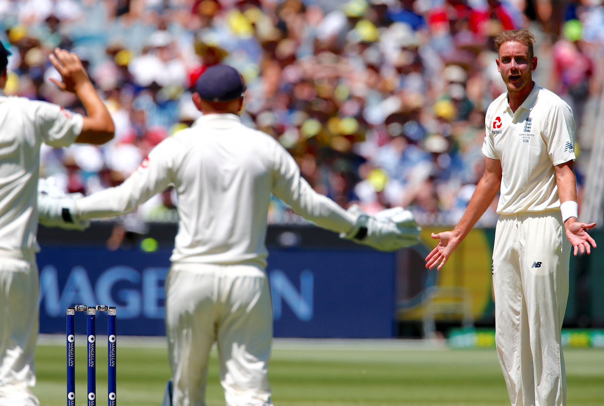 Cricket - Ashes test match - Australia v England - MCG, Melbourne, Australia, December 27, 2017. Australia's Josh Hazlewood celebrates with team mates as England's James Vince walks off the ground after being dismissed during the second day of the fourth Ashes cricket test match. REUTERS/David GrayCricket - Ashes test match - Australia v England - MCG, Melbourne, Australia, December 27, 2017. England's Mark Stoneman backs away from a delivery from Australia's Josh Hazlewood due to a butterfly during the second day of the fourth Ashes cricket test match. REUTERS/David GrayCricket - Ashes test match - Australia v England - MCG, Melbourne, Australia, December 27, 2017. England's Stuart Broad celebrates with team mate James Anderson after dismissing Australia's Nathan Lyon during the second day of the fourth Ashes cricket test match. REUTERS/David GrayCricket - Ashes test match - Australia v England - MCG, Melbourne, Australia, December 27, 2017. Australia's Josh Hazlewood celebrates dismissing England's James Vince during the second day of the fourth Ashes cricket test match. REUTERS/David GrayCricket - Ashes test match - Australia v England - MCG, Melbourne, Australia, December 27, 2017. Australia's captain Steve Smith drops a catch from England's Alastair Cook during the second day of the fourth Ashes cricket test match. REUTERS/David GrayCricket - Ashes test match - Australia v England - MCG, Melbourne, Australia, December 27, 2017. Australia's Nathan Lyon stops a boundary during the second day of the fourth Ashes cricket test match. REUTERS/David GrayCricket - Ashes test match - Australia v England - MCG, Melbourne, Australia, December 27, 2017. England's Mark Stoneman walks past Australian players as they celebrate his dismissal during the second day of the fourth Ashes cricket test match. REUTERS/David GrayCricket - Ashes test match - Australia v England - MCG, Melbourne, Australia, December 27, 2017. England's James Anderson celebrates dismissing Australia's Nathan Lyon during the second day of the fourth Ashes cricket test match. REUTERS/David GrayCricket - Ashes test match - Australia v England - MCG, Melbourne, Australia, December 27, 2017. England's Stuart Broad reacts with team mates after they appealed for LBW for Australia's Shaun Marsh, which was given on appeal, during the second day of the fourth Ashes cricket test match. REUTERS/David GrayCricket - Ashes test match - Australia v England - MCG, Melbourne, Australia, December 27, 2017. England's James Anderson celebrates dismissing Australia's Nathan Lyon during the second day of the fourth Ashes cricket test match. REUTERS/David GrayCricket - Ashes test match - Australia v England - MCG, Melbourne, Australia, December 27, 2017. England's Stuart Broad reacts as he watches with team mates an LBW ruling for Australia's Shaun Marsh, which was given on appeal, during the second day of the fourth Ashes cricket test match. REUTERS/David GrayCricket - Ashes test match - Australia v England - MCG, Melbourne, Australia, December 27, 2017. England's Stuart Broad celebrates dismissing Australia's Jackson Bird LBW during the second day of the fourth Ashes cricket test match. REUTERS/David GrayCricket - Ashes test match - Australia v England - MCG, Melbourne, Australia, December 27, 2017. Australia's captain Steve Smith reacts after being bowled by England's Tom Curran during the second day of the fourth Ashes cricket test match. REUTERS/David GrayCricket - Ashes test match - Australia v England - MCG, Melbourne, Australia, December 27, 2017. Australia's Jackson Bird reacts after a shot from England's James Vince during the second day of the fourth Ashes cricket test match. REUTERS/David GrayCricket - Ashes test match - Australia v England - MCG, Melbourne, Australia, December 27, 2017. England's James Anderson reacts after bowling a delivery during the second day of the fourth Ashes cricket test match. REUTERS/David GrayCricket - Ashes test match - Australia v England - MCG, Melbourne, Australia, December 27, 2017. England's captain Joe Root signals to the umpire as team mate Tom Curran celebrates after bowling Australia's captain Steve Smith during the second day of the fourth Ashes cricket test match. REUTERS/David GrayCricket - Ashes test match - Australia v England - MCG, Melbourne, Australia, December 27, 2017. Australia's Mitchell Marsh reacts after being bowled by England's Chris Woakes during the second day of the fourth Ashes cricket test match. REUTERS/David GrayCricket - Ashes test match - Australia v England - MCG, Melbourne, Australia, December 27, 2017. Australia's captain Steve Smith reacts as he walks off the ground after being bowled by England's Tom Curran during the second day of the fourth Ashes cricket test match. REUTERS/David GrayCricket - Ashes test match - Australia v England - MCG, Melbourne, Australia, December 27, 2017. England's Tom Curran looks towards the umpire as he celebrates with team mates after bowling Australia's captain Steve Smith during the second day of the fourth Ashes cricket test match. REUTERS/David GrayCricket - Ashes test match - Australia v England - MCG, Melbourne, Australia, December 26, 2017. Australia's captain Steve Smith plays a shot during the first day of the fourth Ashes cricket test match. REUTERS/David Gray
