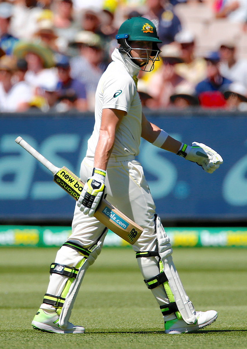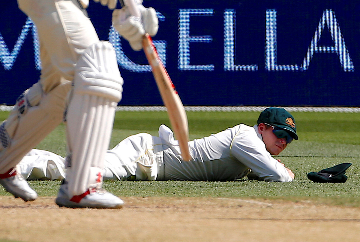 Smith was one of three Australian batsmen out chopping onto the stumps, with all-rounder Mitchell Marsh (nine) and wicketkeeper Tim Paine (24) falling in the same fashion.