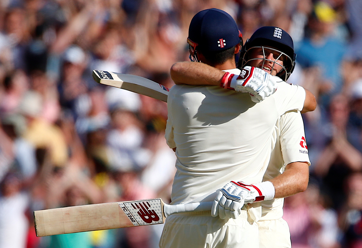 Cricket - Ashes test match - Australia v England - MCG, Melbourne, Australia, December 27, 2017. England's Alastair Cook hugs captain Joe Root as he celebrates after making his century during the second day of the fourth Ashes cricket test match. REUTERS/David Gray