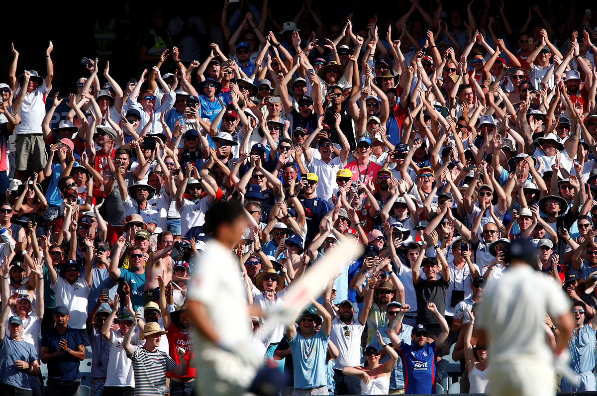Cricket - Ashes test match - Australia v England - MCG, Melbourne, Australia, December 27, 2017. English supporters react as England's Alastair Cook celebrates making his century during the second day of the fourth Ashes cricket test match. REUTERS/David Gray