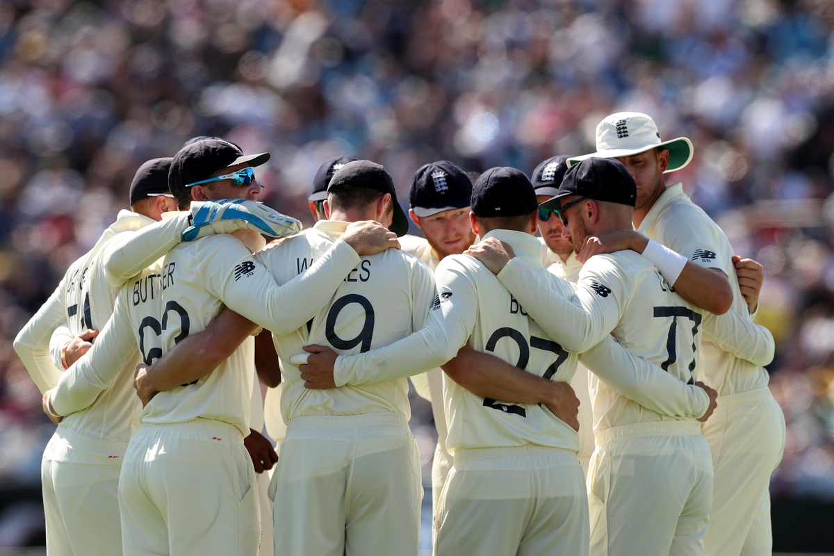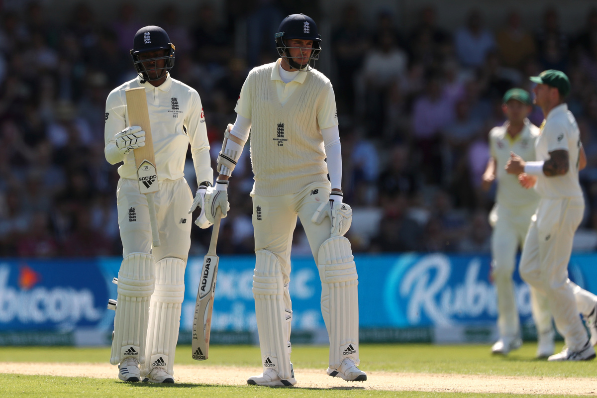 Cricket - Ashes 2019 - Third Test - England v Australia - Headingley, Leeds, Britain - August 23, 2019 General view as the England players huddle before Australia's 2nd innings Action Images via Reuters/Lee SmithCricket - Ashes 2019 - Third Test - England v Australia - Headingley, Leeds, Britain - August 23, 2019 Australia's Marcus Harris hits a four Action Images via Reuters/Andrew BoyersCricket - Ashes 2019 - Third Test - England v Australia - Headingley, Leeds, Britain - August 23, 2019 Australia's Pat Cummins celebrates with teammate Nathan Lyon after taking the wicket of England's Chris Woakes Action Images via Reuters/Andrew BoyersCricket - Ashes 2019 - Third Test - England v Australia - Headingley, Leeds, Britain - August 23, 2019 Australia's Josh Hazlewood holds up the ball at the end of England's 1st innings Action Images via Reuters/Lee SmithCricket - Ashes 2019 - Third Test - England v Australia - Headingley, Leeds, Britain - August 23, 2019 England's Jofra Archer looks for a mark on his bat after being caught out by Australia's Tim Paine off the bowling of Pat Cummins Action Images via Reuters/Lee Smith