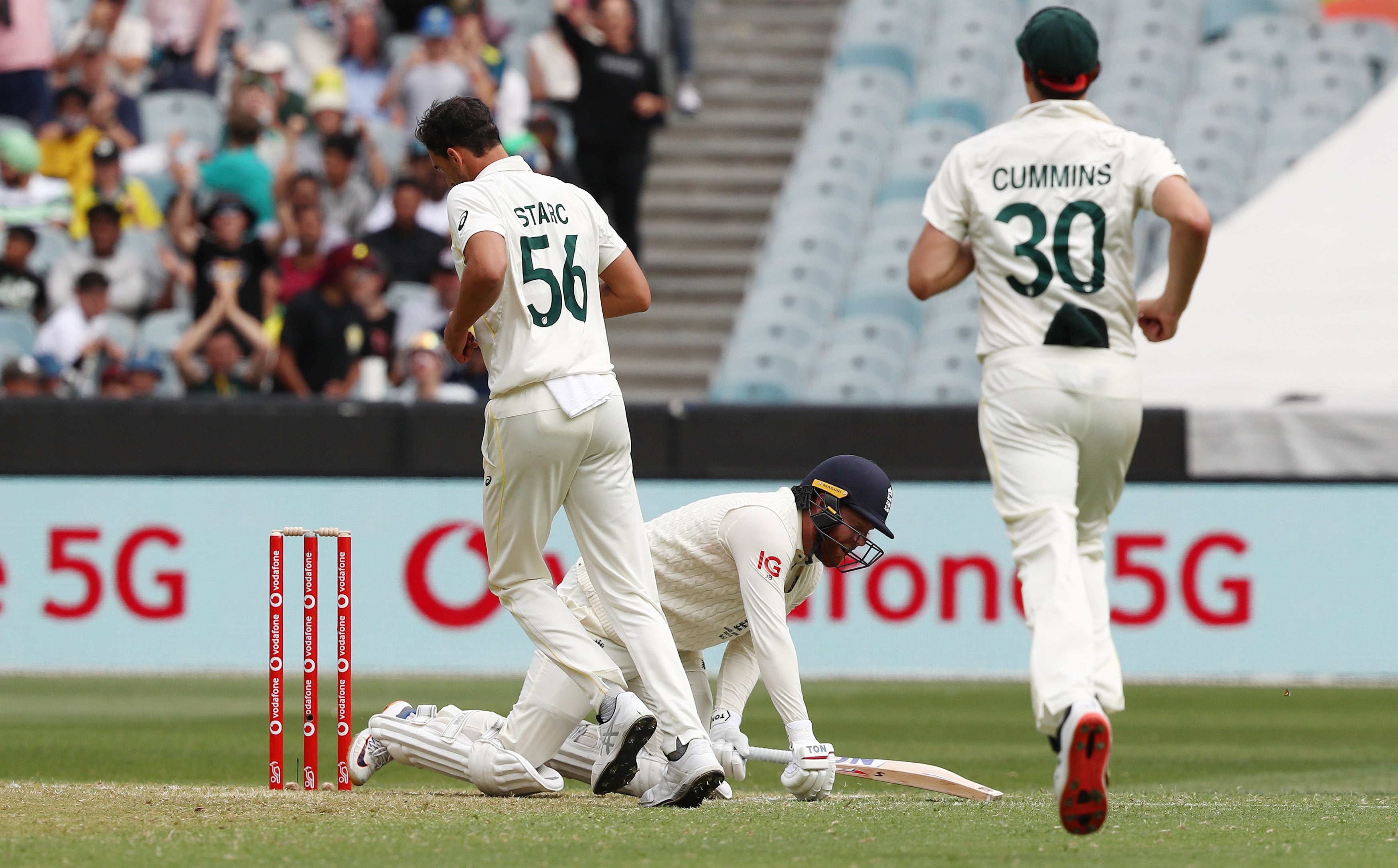 Haseeb Hameed fell to Cummins without scoring, bringing up the 50th duck of the year for England – only four short of the record for a Test team in a calendar year.