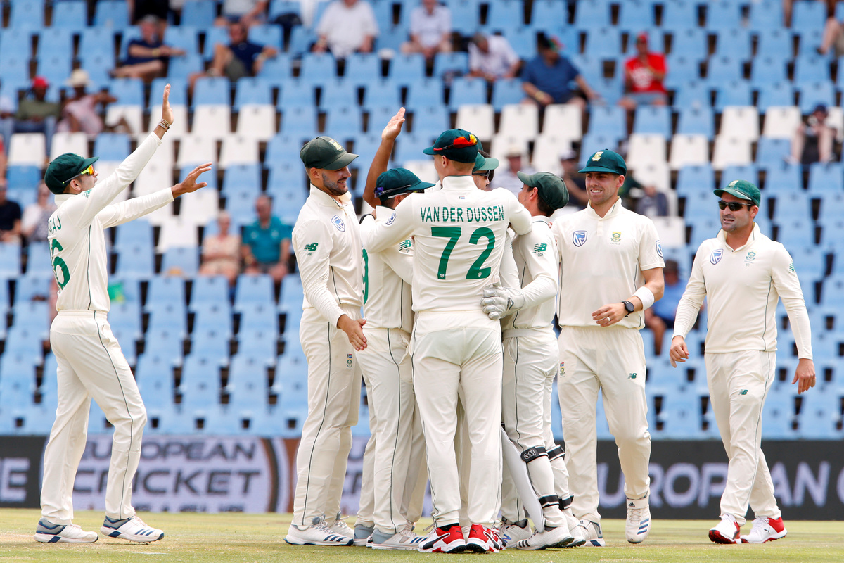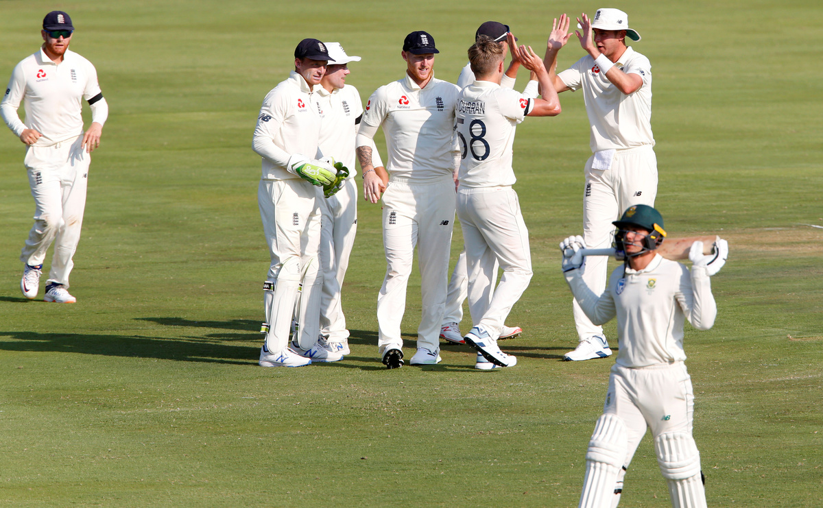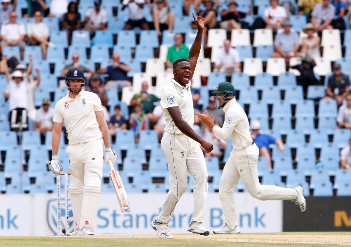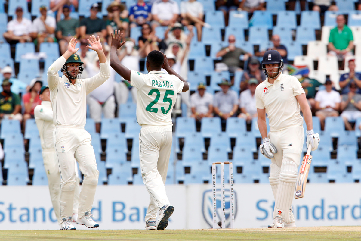 Cricket - South Africa v England - First Test - Supersport Park, Centurion, South Africa - December 27, 2019 South Africa's Kagiso Rabada celebrates the wicket of England's Dom Sibley REUTERS/Rogan WardCricket - South Africa v England - First Test - Supersport Park, Centurion, South Africa - December 27, 2019 South Africa players celebrate the wicket of England's Rory Burns REUTERS/Rogan WardCricket - South Africa v England - First Test - Supersport Park, Centurion, South Africa - December 27, 2019 England's Dom Sibley reacts after losing his wicket REUTERS/Rogan WardCricket - South Africa v England - First Test - Supersport Park, Centurion, South Africa - December 27, 2019 England's Joe Root in action REUTERS/Rogan WardCricket - South Africa v England - First Test - Supersport Park, Centurion, South Africa - December 27, 2019 England's Ben Stokes and Joe Root REUTERS/Rogan WardCricket - South Africa v England - First Test - SuperSport Park, Centurion, South Africa - December 26, 2019 South Africa's Kagiso Rabada is bowled out by England's Stuart Broad REUTERS/Rogan WardCricket - South Africa v England - First Test - SuperSport Park, Centurion, South Africa - December 26, 2019 England's Stuart Broad celebrates taking the wicket of South Africa's Kagiso Rabada REUTERS/Rogan WardCricket - South Africa v England - First Test - SuperSport Park, Centurion, South Africa - December 26, 2019 England's Jofra Archer celebrates taking the wicket South Africa's Keshav Maharaj with teammates REUTERS/Rogan WardCricket - South Africa v England - First Test - SuperSport Park, Centurion, South Africa - December 26, 2019 South Africa's Quinton de Kock walks after losing his wicket REUTERS/Rogan WardCricket - South Africa v England - First Test - SuperSport Park, Centurion, South Africa - December 26, 2019 South Africa's Quinton de Kock walks after losing his wicket REUTERS/Rogan WardCricket - South Africa v England - First Test - SuperSport Park, Centurion, South Africa - December 26, 2019 England's Sam Curran celebrates taking the wicket of South Africa's Quinton de Kock REUTERS/Rogan Ward