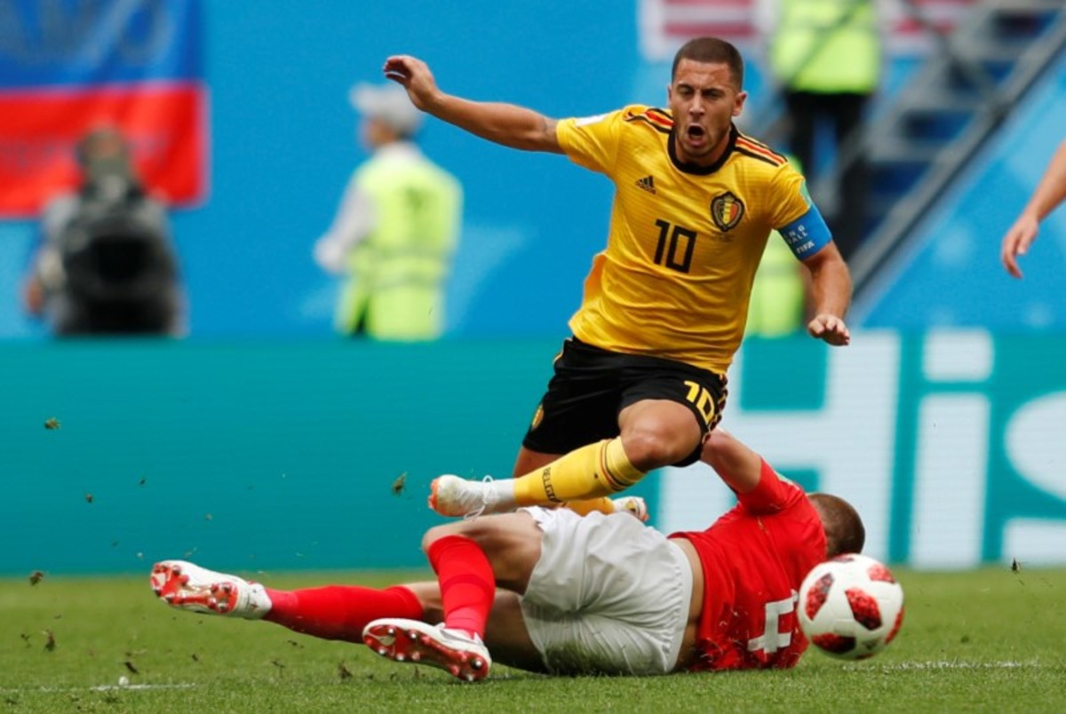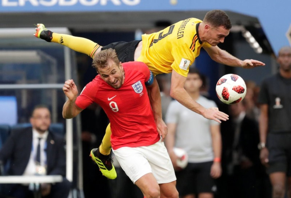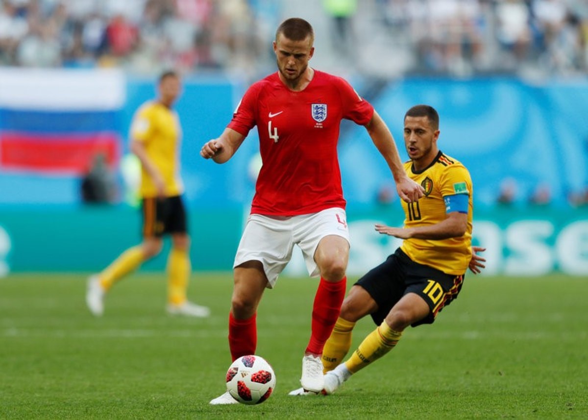 REUTERS/Lee SmithSoccer Football - World Cup - Third Place Play Off - Belgium v England - Saint Petersburg Stadium, Saint Petersburg, Russia - July 14, 2018 England's Eric Dier in action with Belgium's Eden Hazard REUTERS/Lee SmithSoccer Football - World Cup - Third Place Play Off - Belgium v England - Saint Petersburg Stadium, Saint Petersburg, Russia - July 14, 2018 Belgium's Toby Alderweireld in action with England's Fabian Delph REUTERS/Michael Dalder