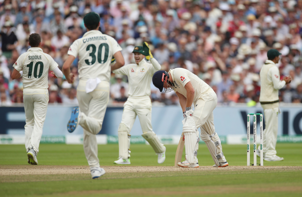 Cricket - Ashes 2019 - First Test - England v Australia - Edgbaston, Birmingham, Britain - August 3, 2019 Australia's Peter Siddle and David Warner celebrate taking the wicket of England's Jonny Bairstow Action Images via Reuters/Andrew BoyersCricket - Ashes 2019 - First Test - England v Australia - Edgbaston, Birmingham, Britain - August 3, 2019 Australia's Tim Paine and Steve Smith appeal unsuccessfully for the wicket of England's Chris Woakes Action Images via Reuters/Andrew BoyersCricket - Ashes 2019 - First Test - England v Australia - Edgbaston, Birmingham, Britain - August 3, 2019 Australia's Peter Siddle celebrates taking the wicket of England's Jonny Bairstow Action Images via Reuters/Andrew BoyersCricket - Ashes 2019 - First Test - England v Australia - Edgbaston, Birmingham, Britain - August 3, 2019 England's Stuart Broad in action as Australia's Tim Paine looks on Action Images via Reuters/Andrew BoyersCricket - Ashes 2019 - First Test - England v Australia - Edgbaston, Birmingham, Britain - August 3, 2019 England's Jonny Bairstow reacts after losing his wicket as the Australia players celebrate Action Images via Reuters/Carl RecineCricket - Ashes 2019 - First Test - England v Australia - Edgbaston, Birmingham, Britain - August 3, 2019 England's Chris Woakes in action Action Images via Reuters/Carl RecineCricket - Ashes 2019 - First Test - England v Australia - Edgbaston, Birmingham, Britain - August 3, 2019 England's Rory Burns gestures to the crowd as he leaves the field after being caught out by Australia's Tim Paine Action Images via Reuters/Carl RecineCricket - Ashes 2019 - First Test - England v Australia - Edgbaston, Birmingham, Britain - August 3, 2019 England's Stuart Broad in action Action Images via Reuters/Andrew Boyers