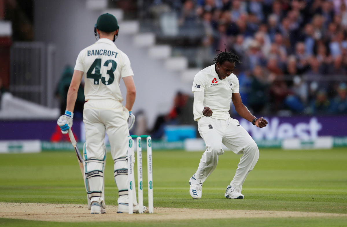 Cricket - Ashes 2019 - Second Test - England v Australia - Lord's Cricket Ground, London, Britain - August 16, 2019 England's Jofra Archer celebrates with team mates after dismissing Australia's Cameron Bancroft by LBW Action Images via Reuters/Paul Childs