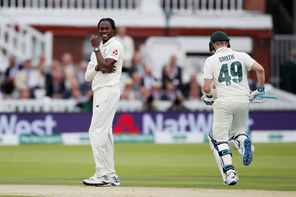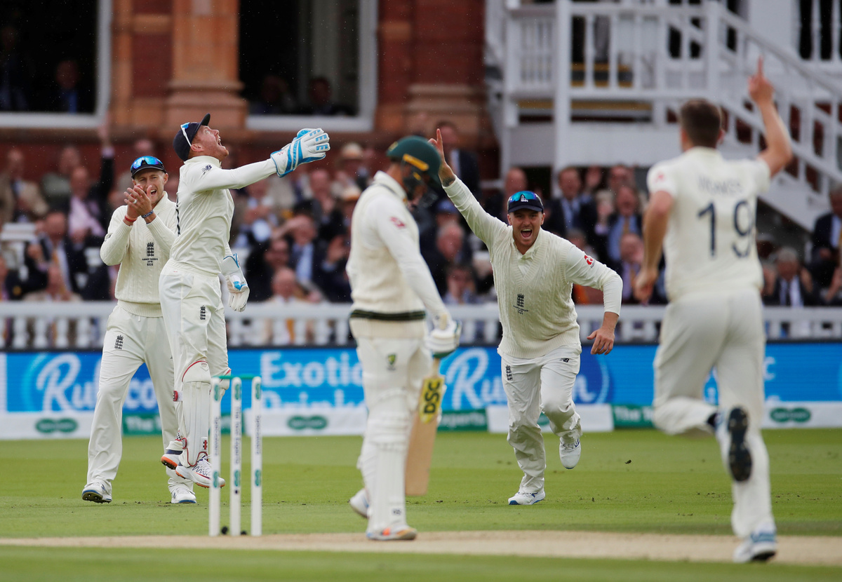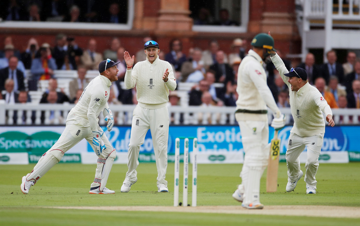 Cricket - Ashes 2019 - Second Test - England v Australia - Lord's Cricket Ground, London, Britain - August 16, 2019 Australia's Steve Smith in action Action Images via Reuters/Paul ChildsCricket - Ashes 2019 - Second Test - England v Australia - Lord's Cricket Ground, London, Britain - August 16, 2019 Australia's Usman Khawaja in action Action Images via Reuters/Paul ChildsCricket - Ashes 2019 - Second Test - England v Australia - Lord's Cricket Ground, London, Britain - August 16, 2019 England's Jofra Archer reacts as Australia's Steve Smith makes a run Action Images via Reuters/Paul ChildsCricket - Ashes 2019 - Second Test - England v Australia - Lord's Cricket Ground, London, Britain - August 16, 2019 England's Jonny Bairstow celebrates taking a catch to dismiss Australia's Usman Khawaja Action Images via Reuters/Paul ChildsCricket - Ashes 2019 - Second Test - England v Australia - Lord's Cricket Ground, London, Britain - August 16, 2019 England's Jofra Archer in action Action Images via Reuters/Paul ChildsCricket - Ashes 2019 - Second Test - England v Australia - Lord's Cricket Ground, London, Britain - August 16, 2019 England's Jofra Archer celebrates with team mates after dismissing Australia's Cameron Bancroft by LBW Action Images via Reuters/Paul ChildsCricket - Ashes 2019 - Second Test - England v Australia - Lord's Cricket Ground, London, Britain - August 16, 2019 England's Jonny Bairstow celebrates taking a catch to dismiss Australia's Usman Khawaja Action Images via Reuters/Paul ChildsCricket - Ashes 2019 - Second Test - England v Australia - Lord's Cricket Ground, London, Britain - August 16, 2019 Australia's Steve Smith in action Action Images via Reuters/Paul ChildsCricket - Ashes 2019 - Second Test - England v Australia - Lord's Cricket Ground, London, Britain - August 16, 2019 Australia's Steve Smith and Travis Head in action as England's Chris Woakes looks on Action Images via Reuters/Peter Cziborra