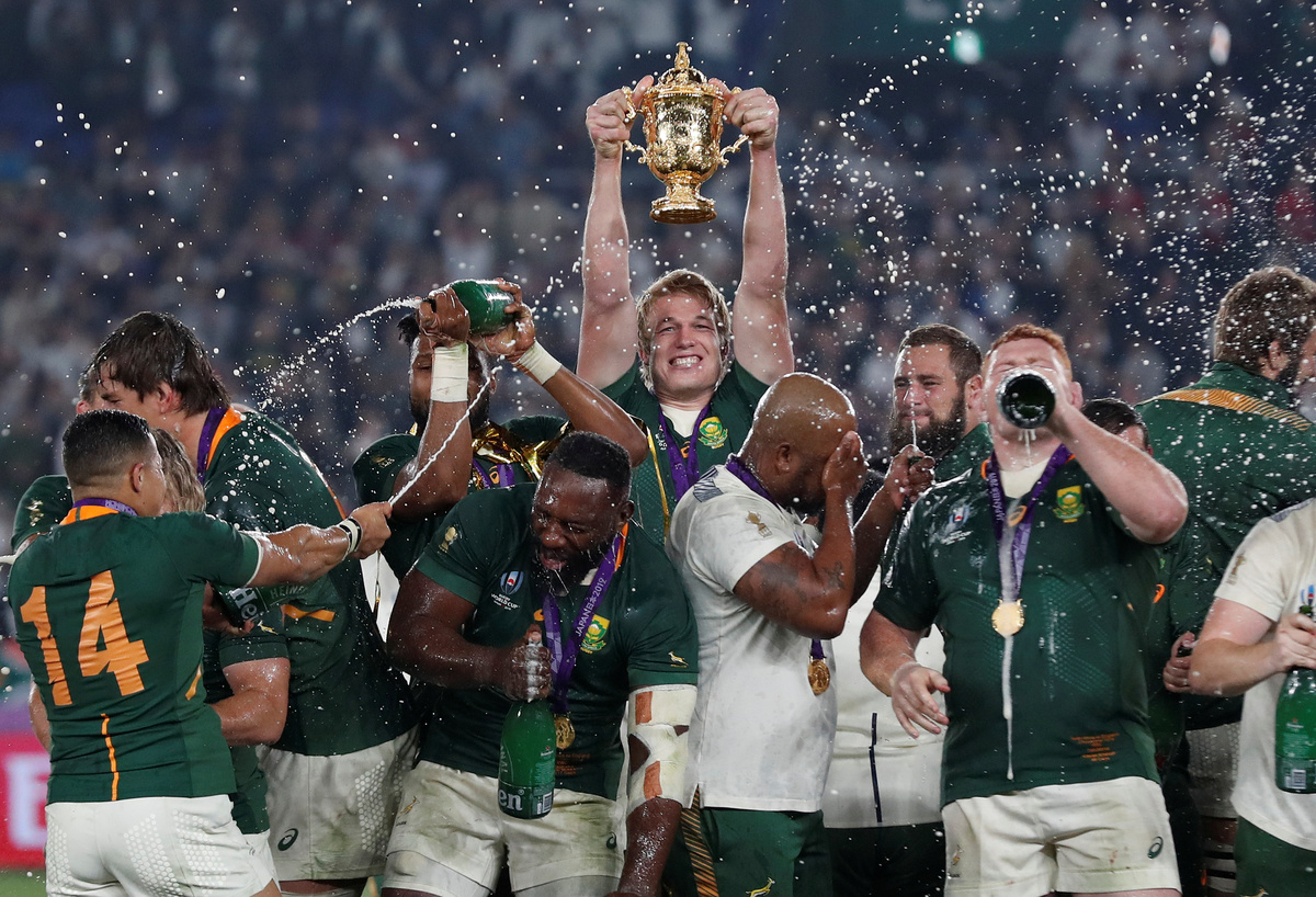 "So many challenges we have," Kolisi said. "Coach (Rassie Erasmus) told us we are not playing for ourselves, we are playing for the people back home. We are really proud as South Africans. Not many people gave us a chance. We had to believe in each other and our plan. We love you, South Africa, and we can achieve anything if we work together."