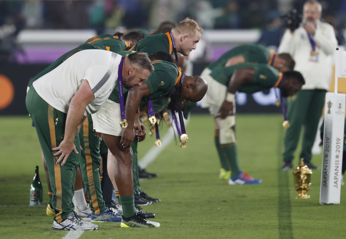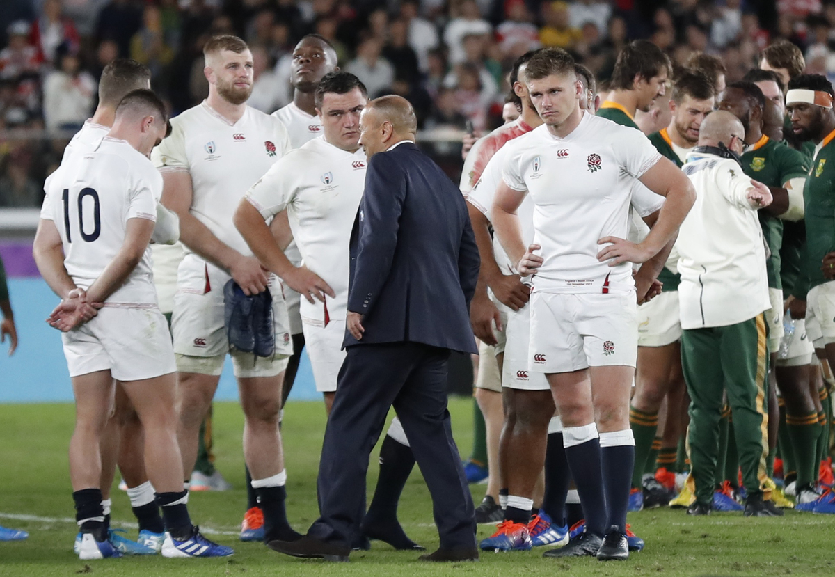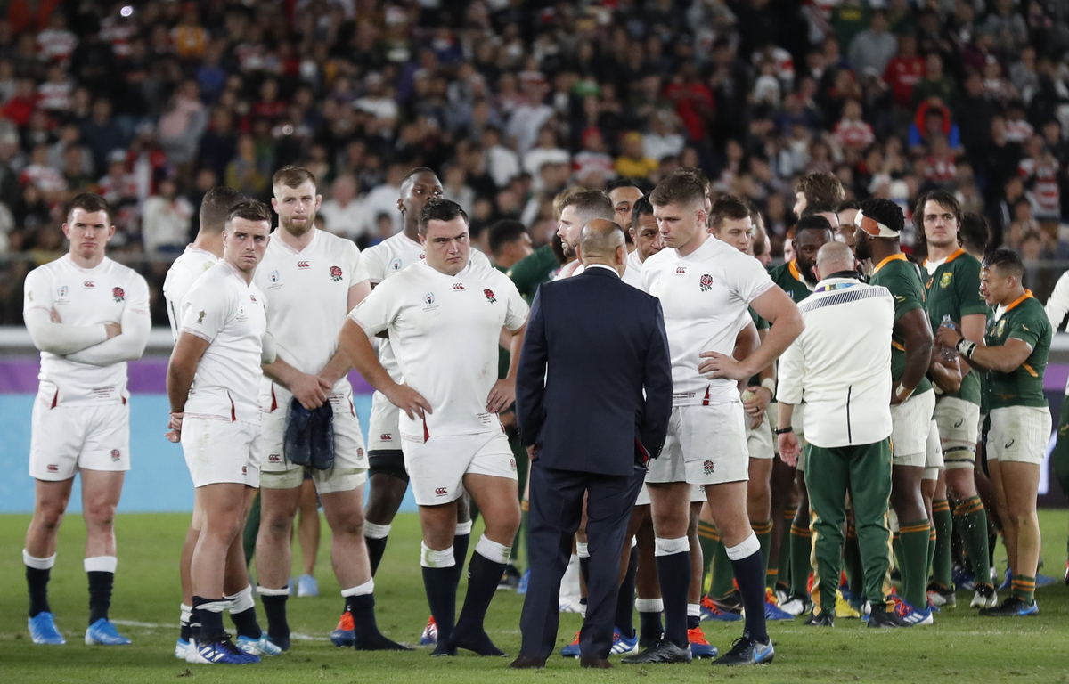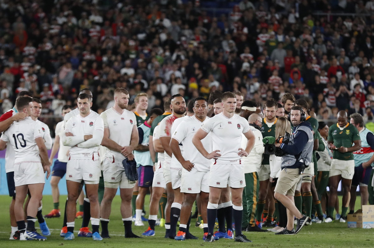 Rugby Union - Rugby World Cup - Final - England v South Africa - International Stadium Yokohama, Yokohama, Japan - November 2, 2019 England's Owen Farrell and teammates look dejected after the match. REUTERS/Peter CziborraRugby Union - Rugby World Cup - Final - England v South Africa - International Stadium Yokohama, Yokohama, Japan - November 2, 2019 South Africa's players acknowledge the fans after the match REUTERS/Issei KatoRugby Union - Rugby World Cup - Final - England v South Africa - International Stadium Yokohama, Yokohama, Japan - November 2, 2019 England head coach Eddie Jones and England's Owen Farrell look dejected after the match REUTERS/Peter CziborraRugby Union - Rugby World Cup - Final - England v South Africa - International Stadium Yokohama, Yokohama, Japan - November 2, 2019 South Africa's Siya Kolisi and teammates celebrate after winning the world cup final. REUTERS/Edgar SuRugby Union - Rugby World Cup - Final - England v South Africa - International Stadium Yokohama, Yokohama, Japan - November 2, 2019 Players in action REUTERS/Issei KatoRugby Union - Rugby World Cup - Final - England v South Africa - International Stadium Yokohama, Yokohama, Japan - November 2, 2019 Referee Jerome Garces awards a penalty to England as England's Tom Curry, Dan Cole and Ben Youngs react REUTERS/Issei KatoRugby Union - Rugby World Cup - Final - England v South Africa - International Stadium Yokohama, Yokohama, Japan - November 2, 2019 England's Henry Slade comes on as a replacement for George Ford REUTERS/Matthew ChildsRugby Union - Rugby World Cup - Final - England v South Africa - International Stadium Yokohama, Yokohama, Japan - November 2, 2019 South Africa's Handre Pollard celebrates with Faf de Klerk after scoring a penalty. REUTERS/Kiyoshi OtaRugby Union - Rugby World Cup - Final - England v South Africa - International Stadium Yokohama, Yokohama, Japan - November 2, 2019 England's Maro Itoje during a half time REUTERS/Matthew ChildsRugby Union - Rugby World Cup - Final - England v South Africa - International Stadium Yokohama, Yokohama, Japan - November 2, 2019 England players during a half time REUTERS/Matthew ChildsRugby Union - Rugby World Cup - Final - England v South Africa - International Stadium Yokohama, Yokohama, Japan - November 2, 2019 South Africa's Handre Pollard scores a penalty. REUTERS/Kiyoshi OtaRugby Union - Rugby World Cup - Final - England v South Africa - International Stadium Yokohama, Yokohama, Japan - November 2, 2019 South Africa's Handre Pollard prepares to kick a penalty. REUTERS/Issei KatoRugby Union - Rugby World Cup - Final - England v South Africa - International Stadium Yokohama, Yokohama, Japan - November 2, 2019 South Africa's Handre Pollard scores a penalty. REUTERS/Issei KatoRugby Union - Rugby World Cup - Final - England v South Africa - International Stadium Yokohama, Yokohama, Japan - November 2, 2019 England's Tom Curry in action with South Africa's Makazole Mapimpi REUTERS/Edgar SuRugby Union - Rugby World Cup - Final - England v South Africa - International Stadium Yokohama, Yokohama, Japan - November 2, 2019 England's Tom Curry in action with South Africa's Faf de Klerk REUTERS/Issei KatoRugby Union - Rugby World Cup - Final - England v South Africa - International Stadium Yokohama, Yokohama, Japan - November 2, 2019 South Africa's Faf de Klerk clashes with England's Tom Curry REUTERS/Edgar SuRugby Union - Rugby World Cup - Final - England v South Africa - International Stadium Yokohama, Yokohama, Japan - November 2, 2019 England's George Kruis in action. REUTERS/Peter CziborraRugby Union - Rugby World Cup - Final - England v South Africa - International Stadium Yokohama, Yokohama, Japan - November 2, 2019 England's Kyle Sinckler receives medical attention after sustaining an injury. REUTERS/Issei KatoRugby Union - Rugby World Cup - Final - England v South Africa - International Stadium Yokohama, Yokohama, Japan - November 2, 2019 England's Kyle Sinckler receives medical attention during the match REUTERS/Edgar SuRugby Union - Rugby World Cup - Final - England v South Africa - International Stadium Yokohama, Yokohama, Japan - November 2, 2019 South Africa's Makazole Mapimpi in action as England's Kyle Sinckler sustains an injury REUTERS/Edgar SuRugby Union - Rugby World Cup - Final - England v South Africa - International Stadium Yokohama, Yokohama, Japan - November 2, 2019 England's Kyle Sinckler receives medical attention after sustaining an injury. REUTERS/Matthew ChildsRugby Union - Rugby World Cup - Final - England v South Africa - International Stadium Yokohama, Yokohama, Japan - November 2, 2019 Fans cheer during the match REUTERS/Issei Kato
