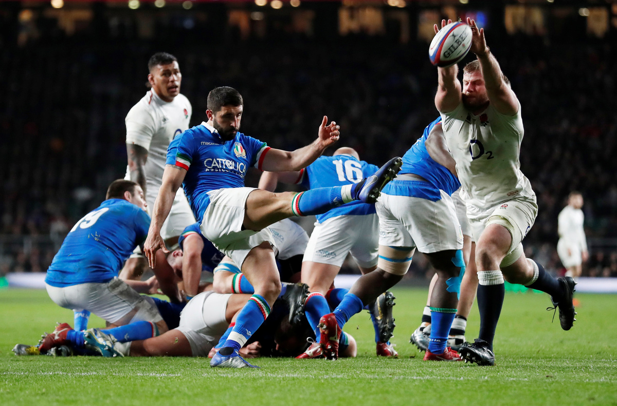 England were in total control throughout as tries by Jamie George, Jonny May, Manu Tuilagi and Brad Shields had the bonus point in the bag and a 31-7 lead by halftime, with Tommaso Allan grabbing the visitors' lone score.