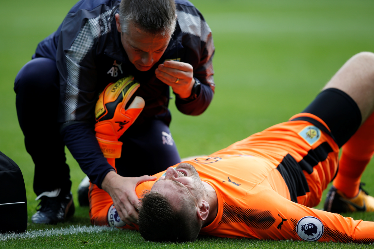 Heaton, who is part England manager Gareth Southgate's current squad and has two caps, had to be substituted in the 36th minute after a bad fall when gathering a cross.