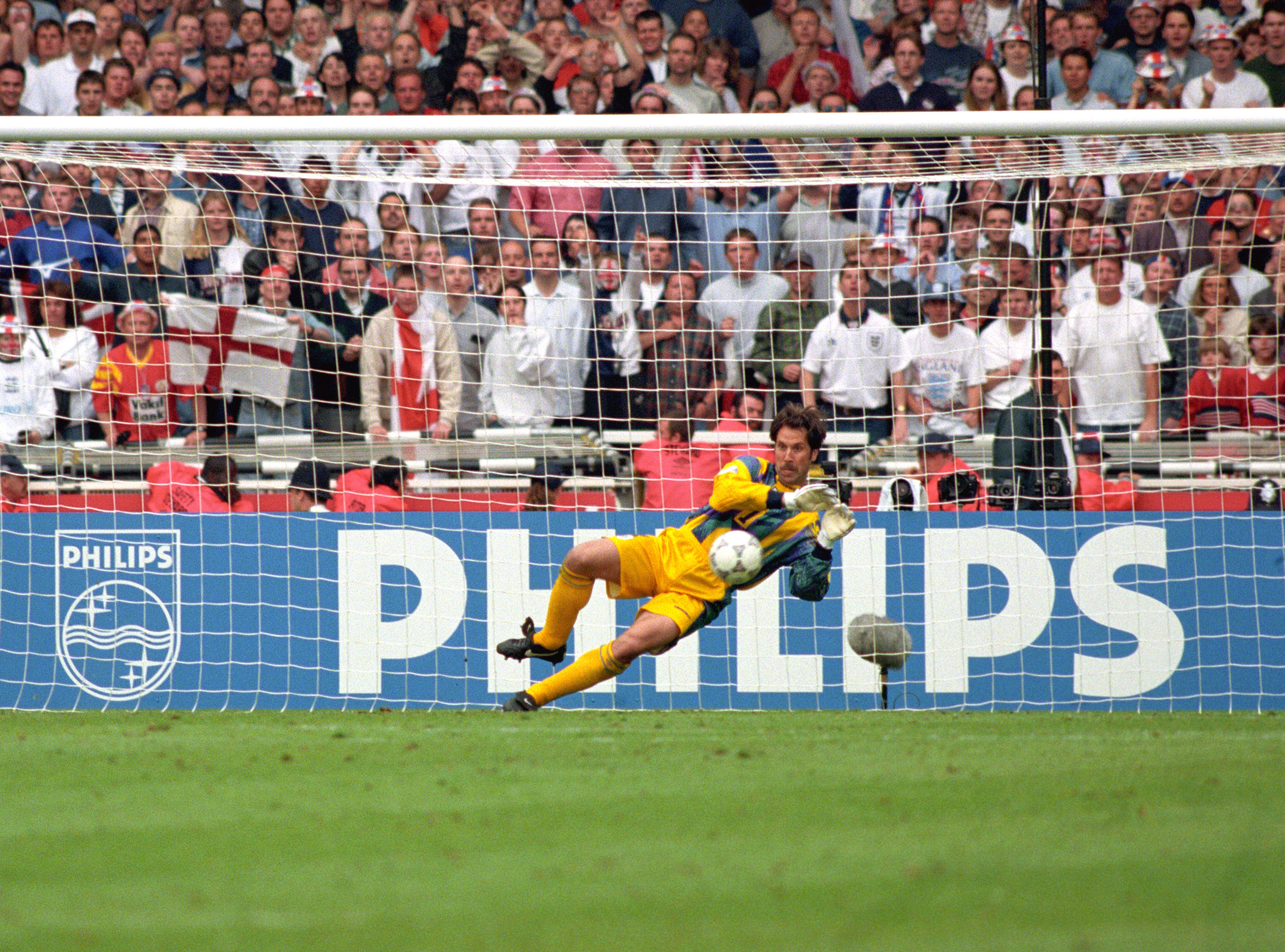 England scored four from four thanks to Alan Shearer, David Platt, Stuart Pearce and Paul Gascoigne, with Pearce’s cathartic celebrations providing the enduring memory as he laid to rest the ghost of his miss against what was then West Germany at the 1990 World Cup.
