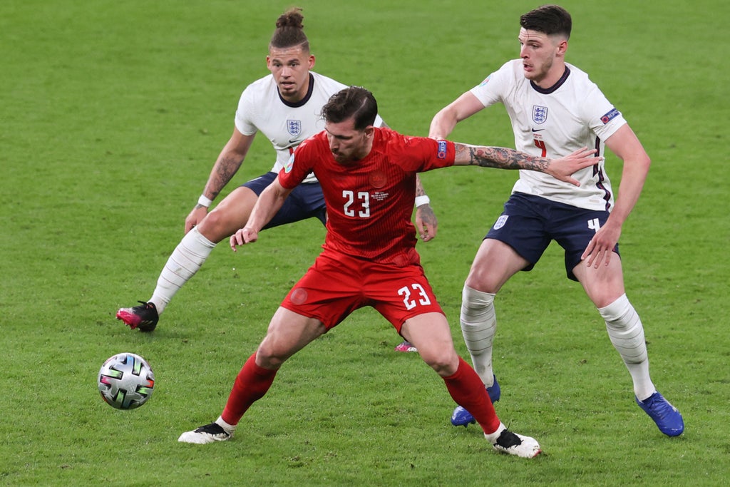 England will always play with a pivot, which is important. That’s the person who’s going to rotate possession. I think the reason we’re seeing Declan Rice and Kalvin Phillips play at the same time is because Southgate will want a plus-one security point. So that will mean England have at least two players who could pop into and make those recovery runs or slot into the full-back areas when Kyle Walker or Luke Shaw or Kieran Trippier take up wide advanced positions. If you break down Italy’s opportunity to score, then you get the opportunity to create from penetration, combinations, crossing, individualism through shots from distance for example. England will try to make Italy’s attacking play predictable to help make those regains. At the same time, Southgate will want variety in offensive play which is why you’ll see him alternate between Saka, Grealish and Sancho for example. They’ll want to create an opening or draw a foul, which leads to a set-piece, which is a great strength of the squad.