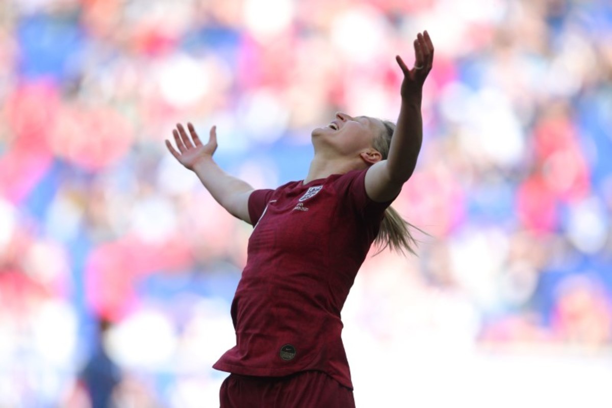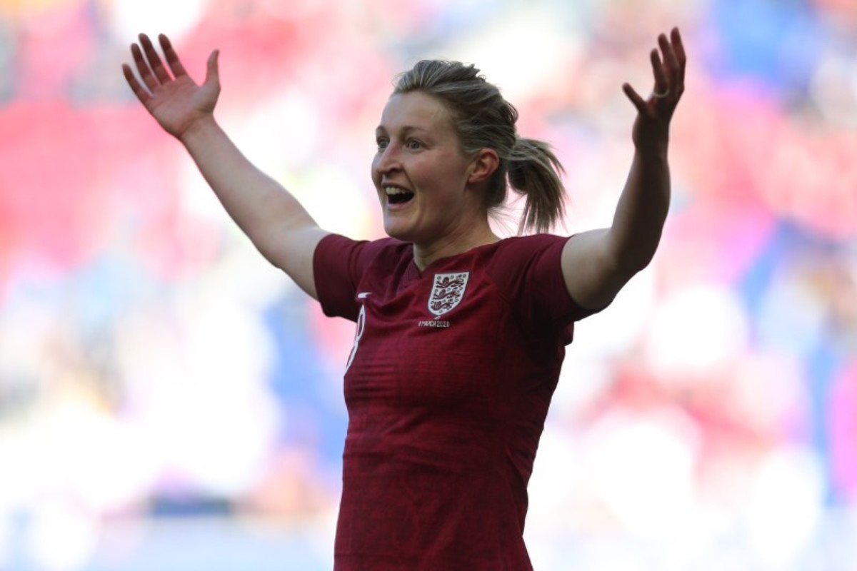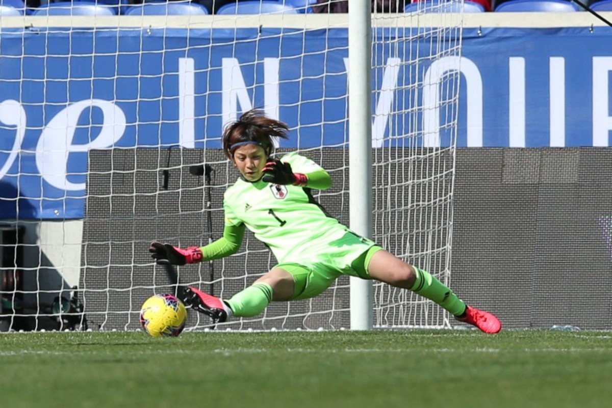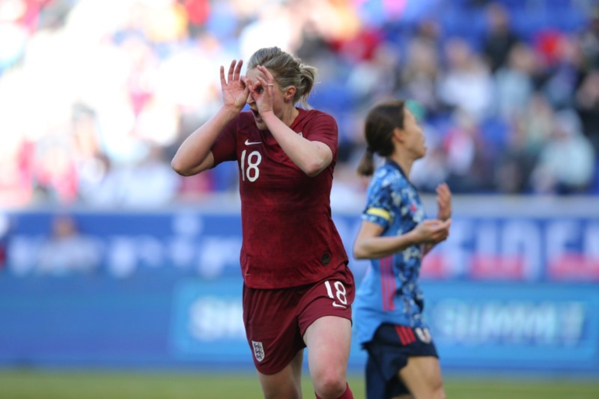 Mar 8, 2020; Harrison, New Jersey, USA; Japan goalkeeper Sakiko Ikeda (1) lunges for a ball against England during the first half of a game in the 2020 She Believes Cup soccer series at Red Bull Arena. Mandatory Credit: Brad Penner-USA TODAY SportsMar 8, 2020; Harrison, New Jersey, USA; England forward Ellen White (18) celebrates her goal against Japan during the second half of a match in the 2020 She Believes Cup soccer series at Red Bull Arena. Mandatory Credit: Brad Penner-USA TODAY Sports