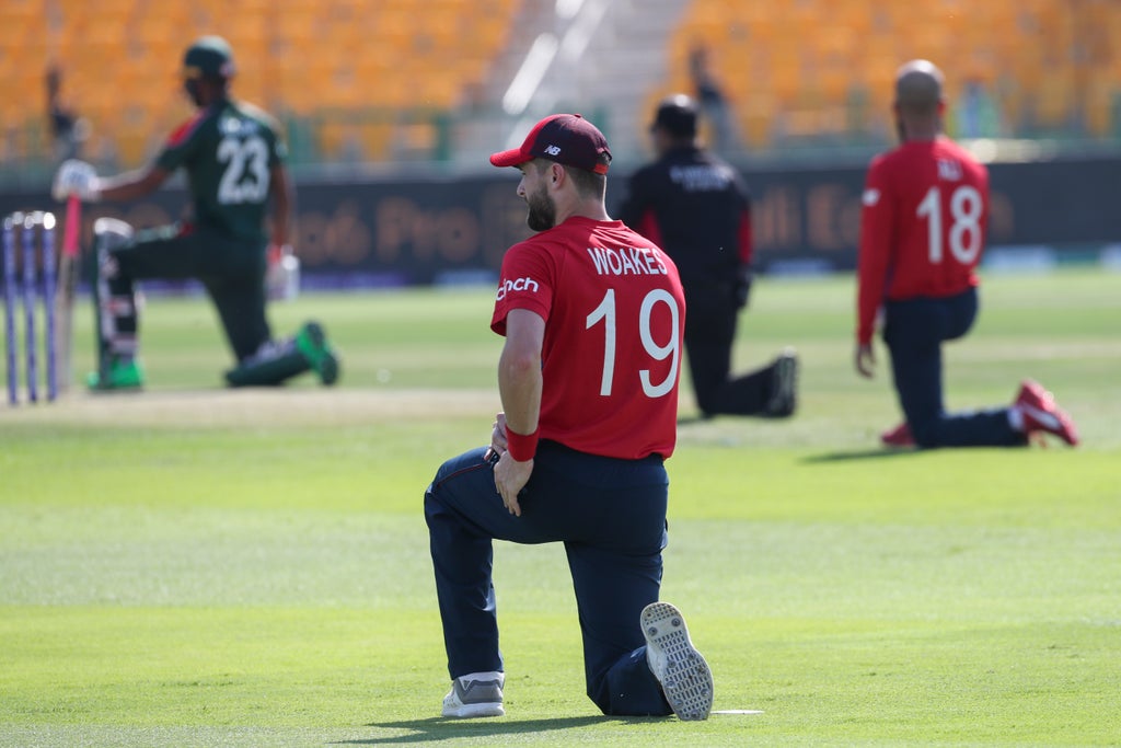 England took the knee for the second time in two matches at the T20 World Cup, joining Bangladesh in the anti-racism gesture ahead of their Super 12s showdown in Abu Dhabi.
