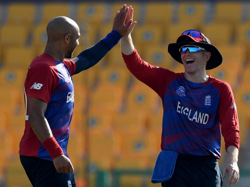 In an all-round team performance, it was Jason Roy who emerged with the most credit, striking a swift 61 that broke the back of England’s chase of a lacklustre target of 125, helping the team to within 13 runs of victory before he fell. It was a fitting celebration of the Surrey batter’s 50th T20i cap – clean strikes right through this seventh half-century in the format and second at an ICC event.
