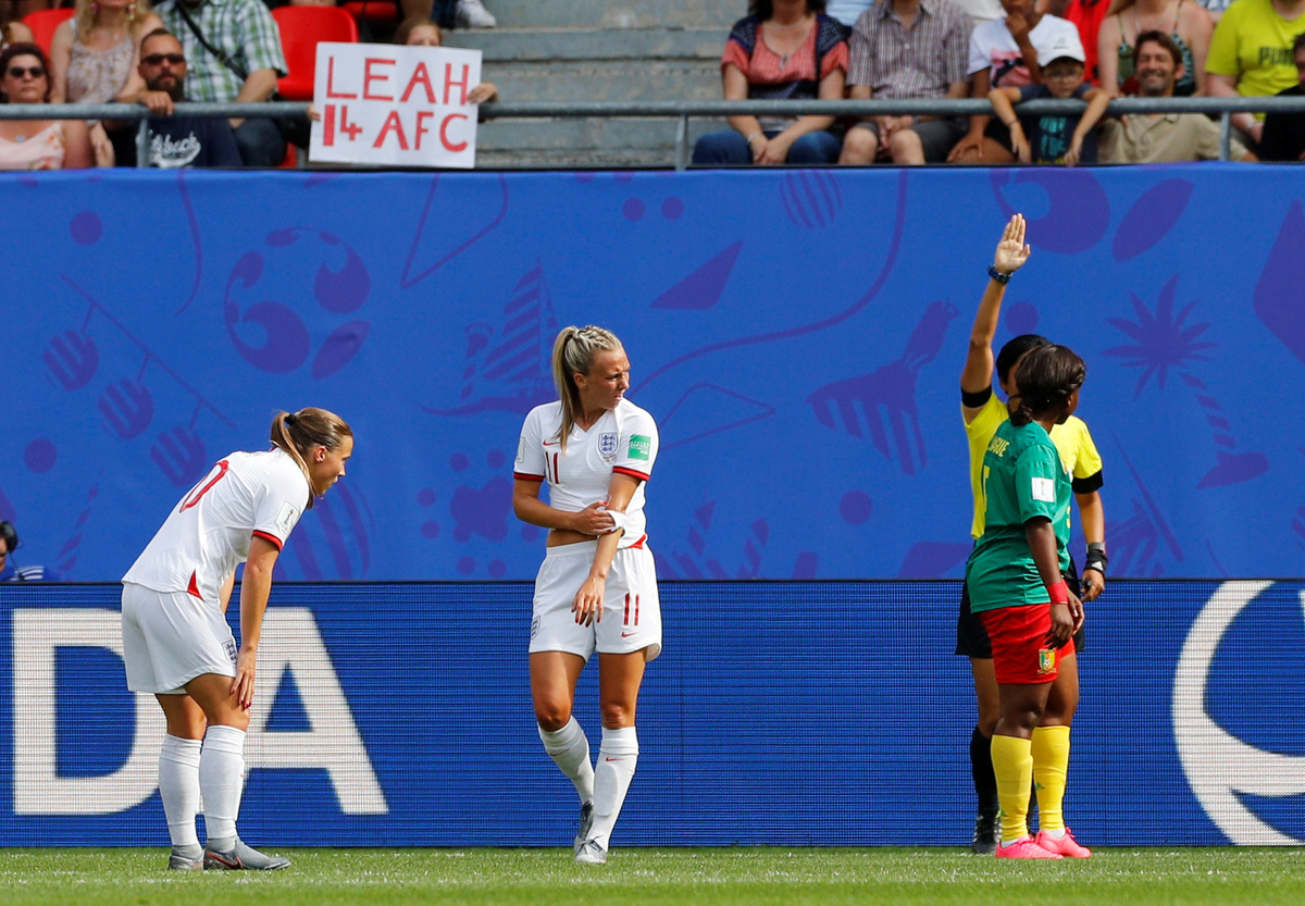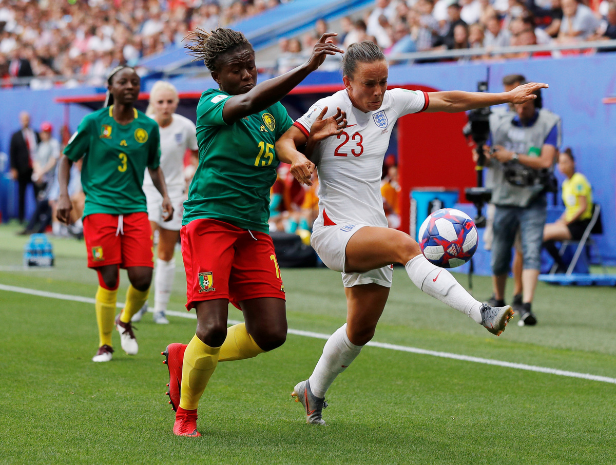 VALENCIENNES, France (Reuters) - England beat Cameroon 3-0 to advance to the women's World Cup quarter-finals on Sunday in a match marked by remarkable scenes as the African side twice reacted furiously to video assistant referee (VAR) decisions that went against them, initially refusing to restart the game.