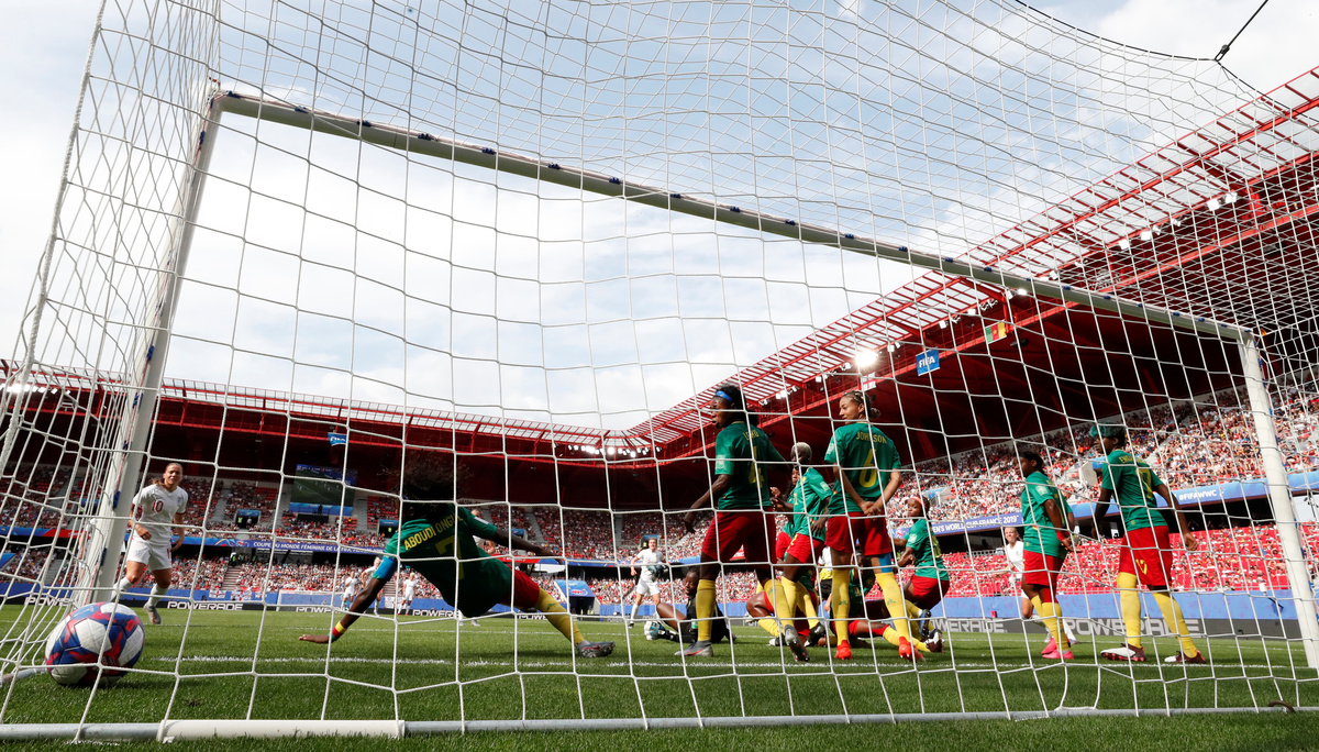 England took the lead in the 14th minute when Houghton drilled the ball low from an indirect free kick inside the penalty area, after Cameroon goalkeeper Annette Ngo Ndom collected a backpass from defender Augustine Ejangue.