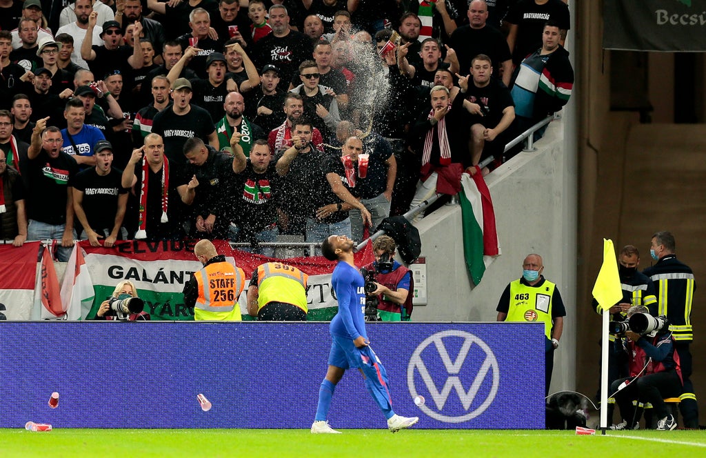The home side will surely be sanctioned for an evening at the Puskas Arena that saw cups and a flare thrown at Gareth Southgate’s celebrating players, as well as the taking of the knee booed with a depressing inevitability, before grim reports of monkey chants.
