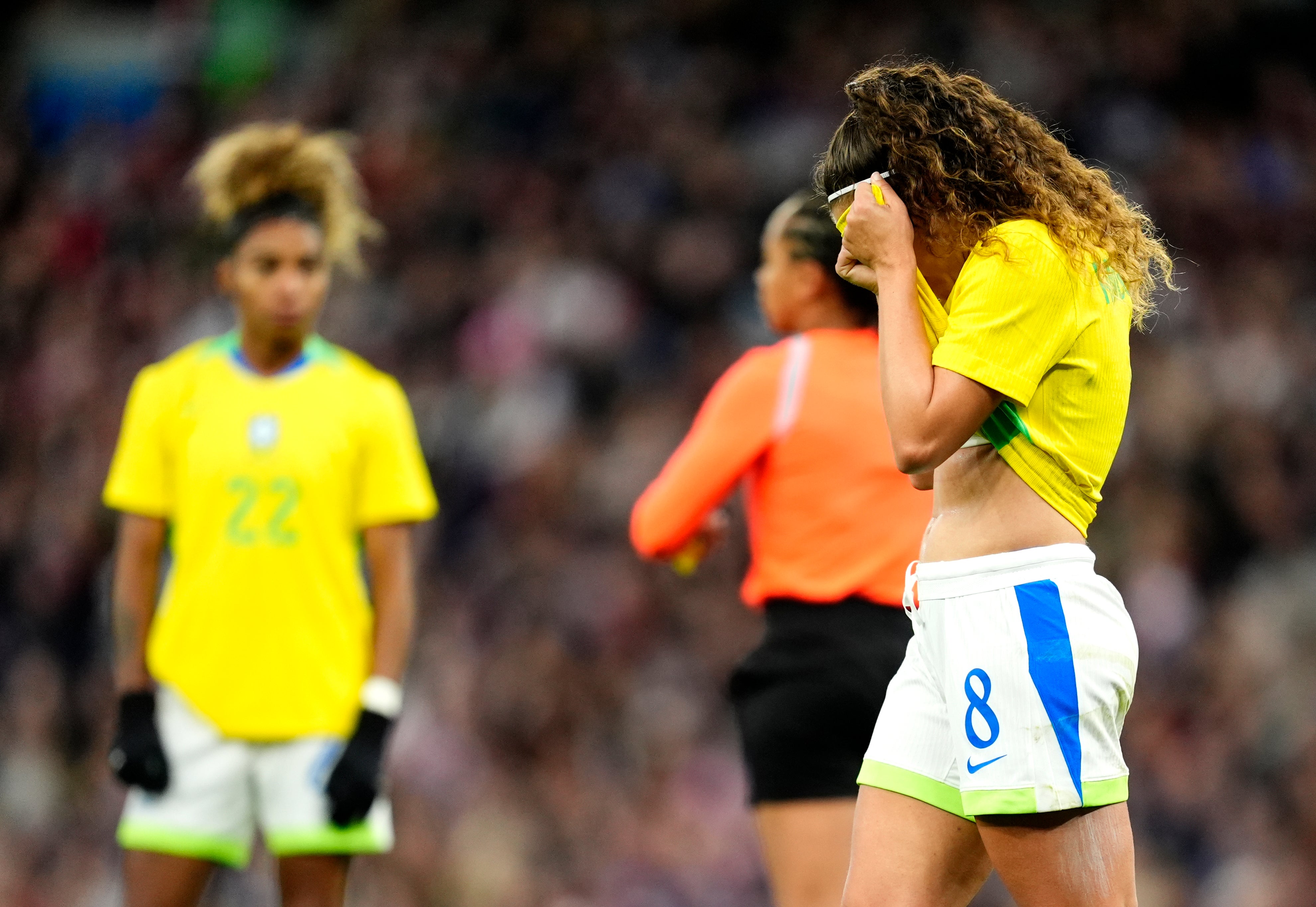 It went from bad to worse for Sarina Wiegman’s side when Dudinha doubled Brazil’s lead on the counter-attack, but the visitors were then reduced to 10 players when Angelina was sent off for fouling Ella Toone and denying a goalscoring opportunity.