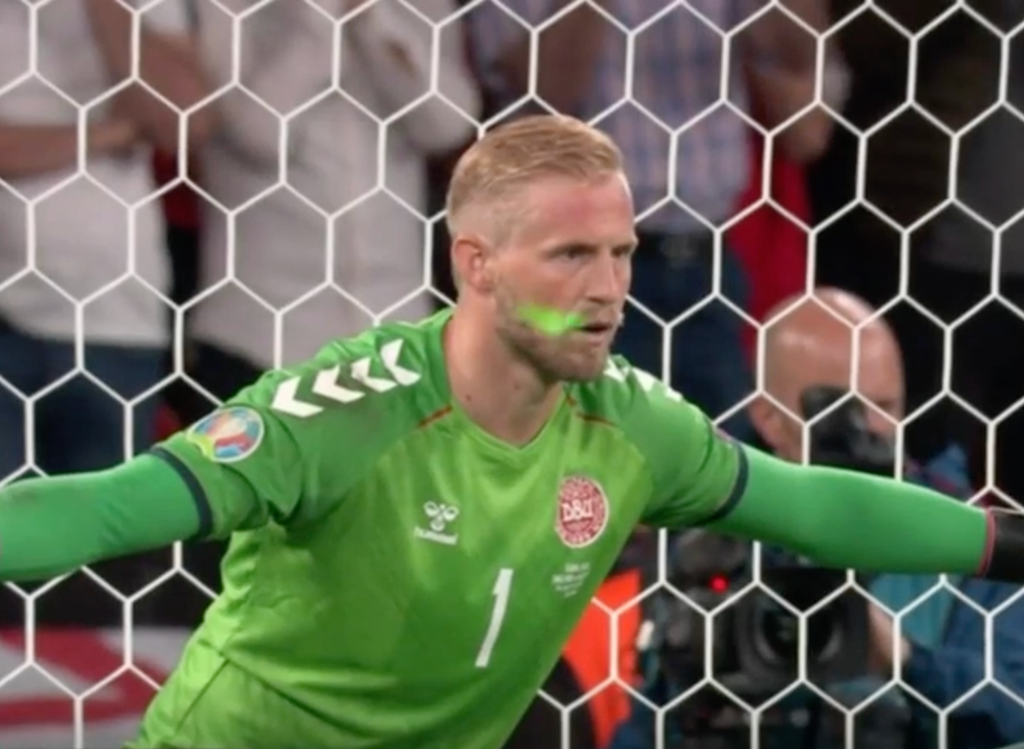 Someone in the crowd at Wembley pointed the laser at Schmeichel’s face just as he was gearing up for Harry Kane’s penalty attempt.