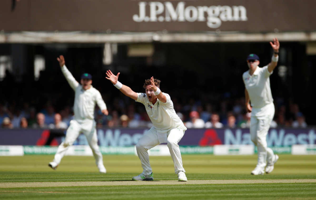 Cricket - Test Match - England v Ireland - Lord's Cricket Ground, London, Britain - July 24, 2019 Ireland's Paul Stirling in action Action Images via Reuters/Andrew BoyersCricket - Test Match - England v Ireland - Lord's Cricket Ground, London, Britain - July 24, 2019 England's Stuart Broad reacts Action Images via Reuters/Andrew BoyersCricket - Test Match - England v Ireland - Lord's Cricket Ground, London, Britain - July 24, 2019 England's Stuart Broad reacts Action Images via Reuters/Andrew BoyersCricket - Test Match - England v Ireland - Lord's Cricket Ground, London, Britain - July 24, 2019 Ireland's Andy Balbirnie in action Action Images via Reuters/Andrew BoyersCricket - Test Match - England v Ireland - Lord's Cricket Ground, London, Britain - July 24, 2019 Ireland's James McCollum in action Action Images via Reuters/Andrew BoyersCricket - Test Match - England v Ireland - Lord's Cricket Ground, London, Britain - July 24, 2019 England's Olly Stone is bowled by Ireland's Mark Adair Action Images via Reuters/Andrew BoyersCricket - Test Match - England v Ireland - Lord's Cricket Ground, London, Britain - July 24, 2019 Ireland's Tim Murtagh reacts after England's first innings Action Images via Reuters/Andrew BoyersCricket - Test Match - England v Ireland - Lord's Cricket Ground, London, Britain - July 24, 2019 England's Olly Stone in action Action Images via Reuters/Andrew BoyersCricket - Test Match - England v Ireland - Lord's Cricket Ground, London, Britain - July 24, 2019 Ireland's Mark Adair appeals for the wicket of England's Joe Root Action Images via Reuters/Andrew BoyersCricket - Test Match - England v Ireland - Lord's Cricket Ground, London, Britain - July 24, 2019 England's Sam Curran hits a four Action Images via Reuters/Andrew BoyersCricket - Test Match - England v Ireland - Lord's Cricket Ground, London, Britain - July 24, 2019 England's Jonny Bairstow walks off after losing his wicket Action Images via Reuters/Andrew BoyersCricket - Test Match - England v Ireland - Lord's Cricket Ground, London, Britain - July 24, 2019 England's Chris Woakes loses his wicket Action Images via Reuters/Andrew BoyersCricket - Test Match - England v Ireland - Lord's Cricket Ground, London, Britain - July 24, 2019 Ireland's Tim Murtagh celebrates taking the wicket of England's Moeen Ali Action Images via Reuters/Andrew BoyersCricket - Test Match - England v Ireland - Lord's Cricket Ground, London, Britain - July 24, 2019 England's Moeen Ali reacts after losing his wicket Action Images via Reuters/Andrew BoyersCricket - Test Match - England v Ireland - Lord's Cricket Ground, London, Britain - July 24, 2019 Ireland's Tim Murtagh celebrates taking the wicket of England's Jonny Bairstow Action Images via Reuters/Andrew BoyersCricket - Test Match - England v Ireland - Lord's Cricket Ground, London, Britain - July 24, 2019 England's Jonny Bairstow is bowled out by Ireland's Tim Murtagh Action Images via Reuters/Andrew BoyersCricket - Test Match - England v Ireland - Lord's Cricket Ground, London, Britain - July 24, 2019 Ireland's Tim Murtagh celebrates taking the wicket of England's Jonny Bairstow Action Images via Reuters/Andrew BoyersCricket - Test Match - England v Ireland - Lord's Cricket Ground, London, Britain - July 24, 2019 England's Joe Root looks dejected after losing his wicket Action Images via Reuters/Andrew Boyers