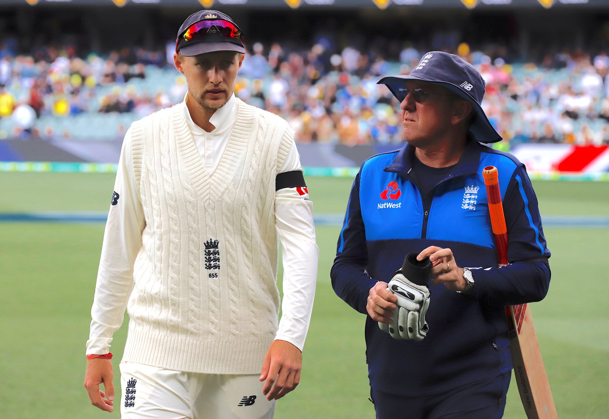 Cricket - Ashes test match - Australia v England - Adelaide Oval, Adelaide, Australia, December 2, 2017. England head coach Trevor Bayliss and team captain Joe Root talk before the start of the first day of the second Ashes cricket test match. REUTERS/David Gray