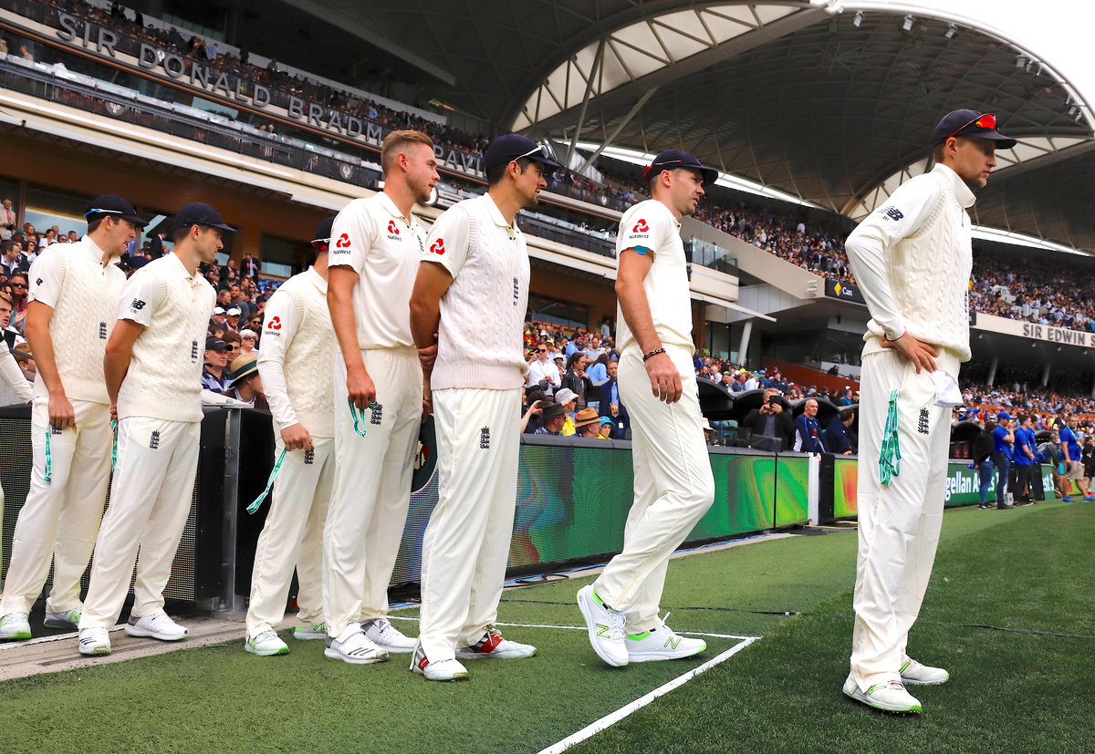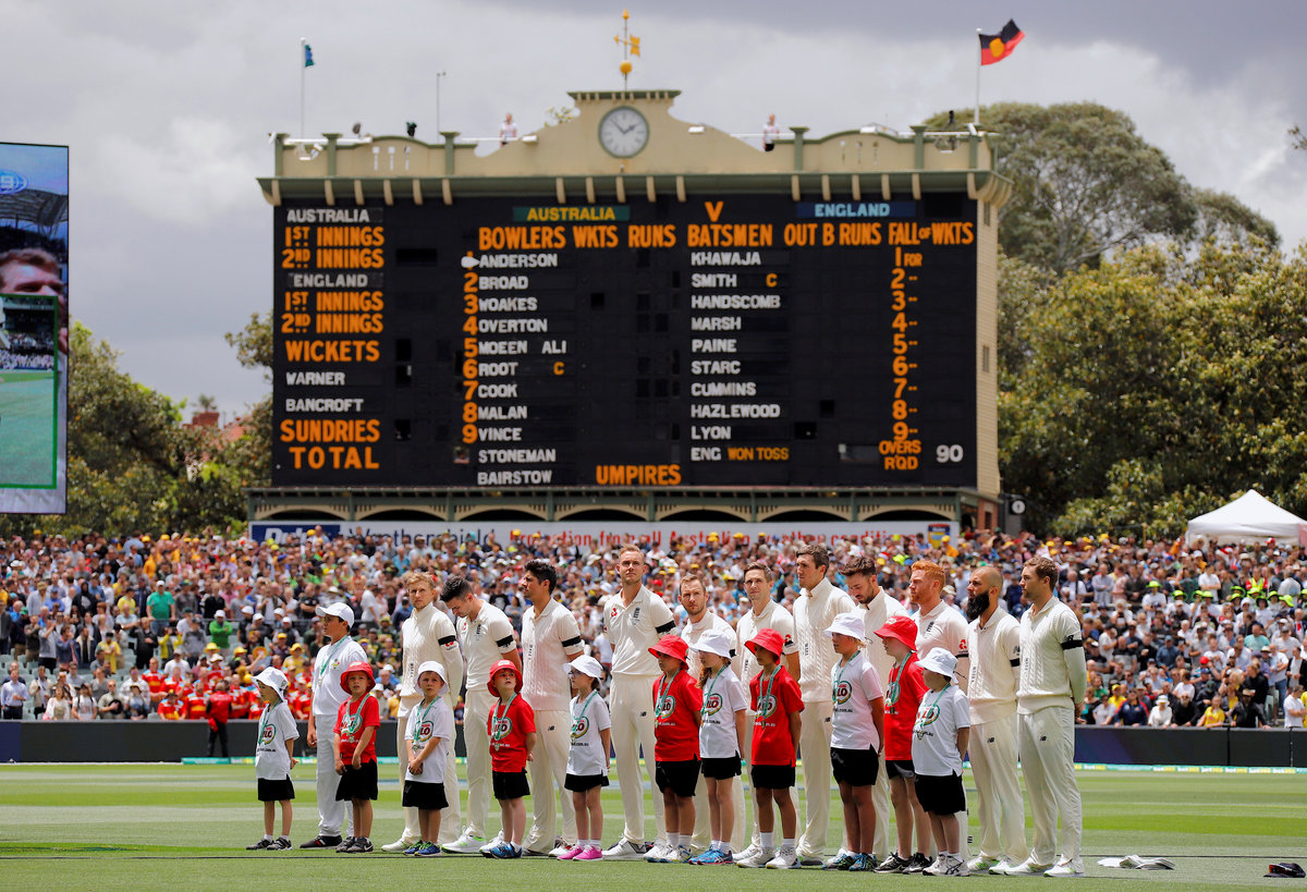 Cricket - Ashes test match - Australia v England - Adelaide Oval, Adelaide, Australia, December 2, 2017. England players stand together for the national anthems before the start of the first day of the second Ashes cricket test match. REUTERS/David Gray