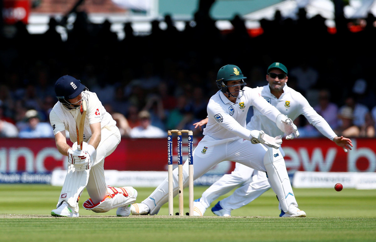 LONDON (Reuters) - New England captain Joe Root rode his luck to make a battling unbeaten 184 and lift the hosts to a commanding 357 for five on the opening day of the first test against South Africa at Lord's on Thursday.